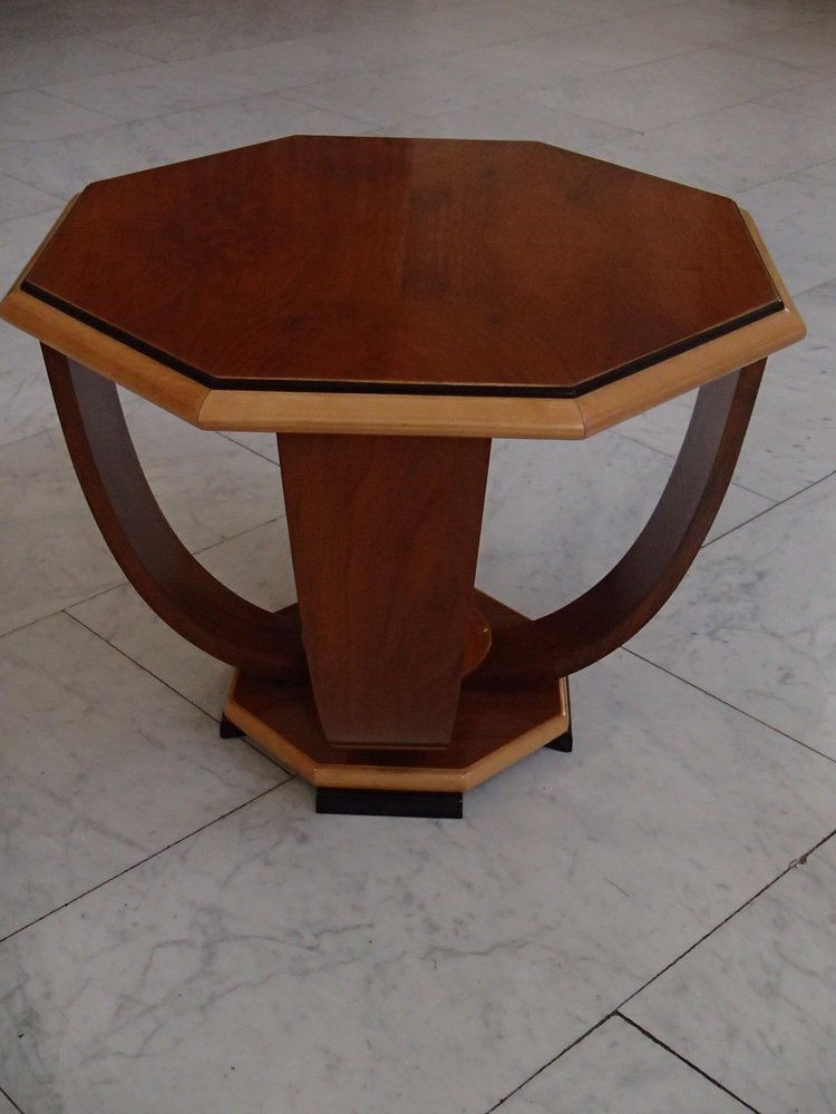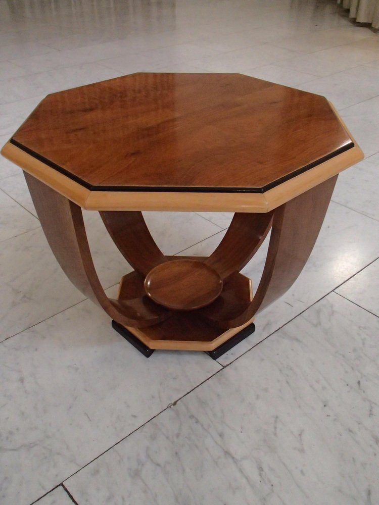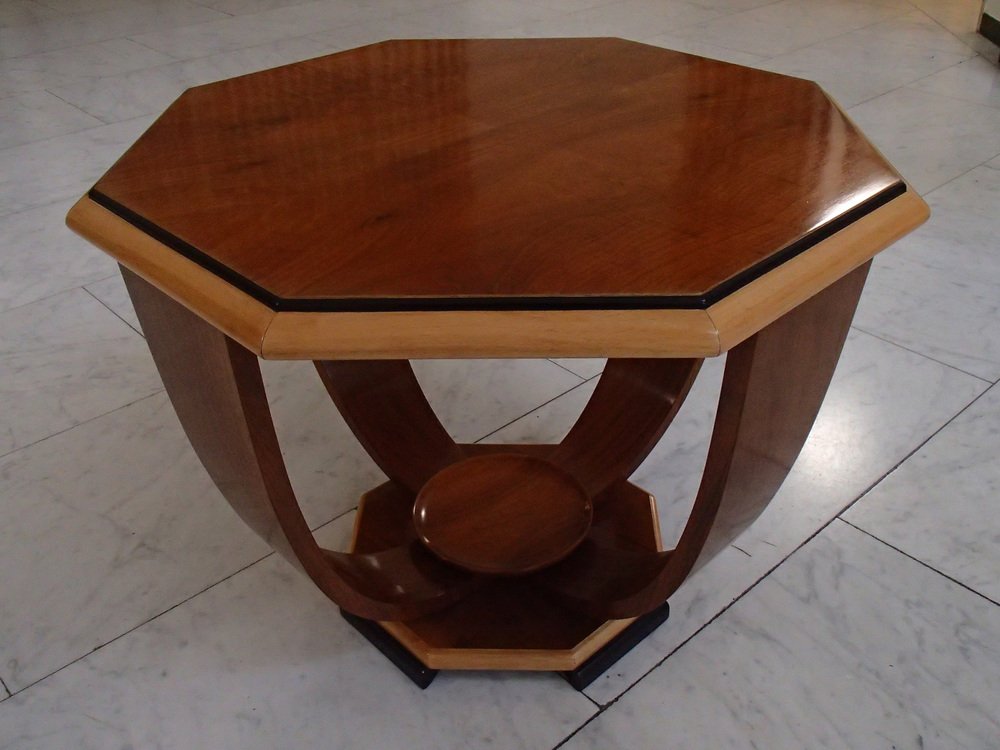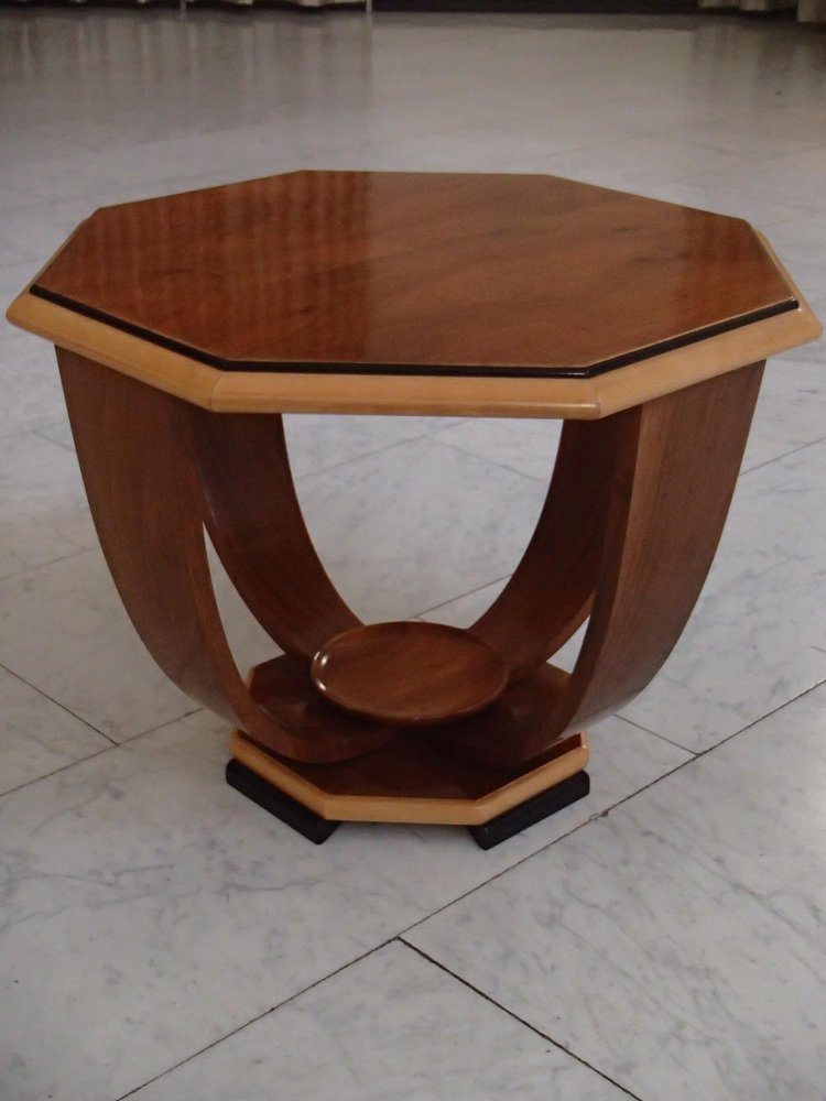 Art Deco Walnuss Couchtisch auf 4 gebogenen Beinen, 1935