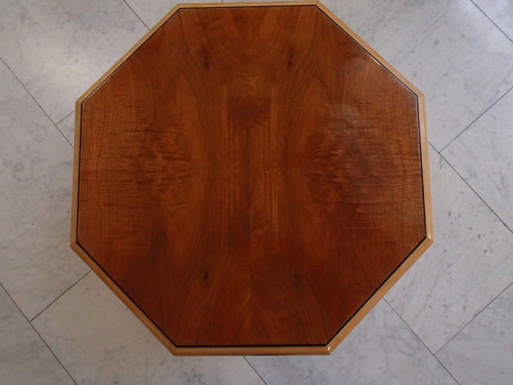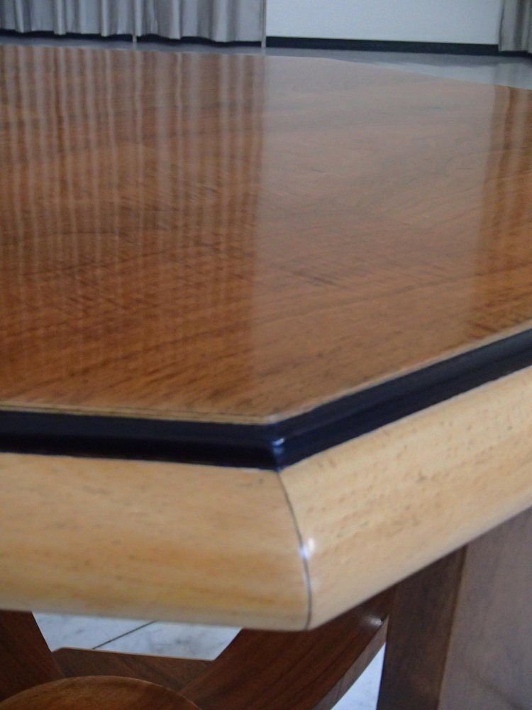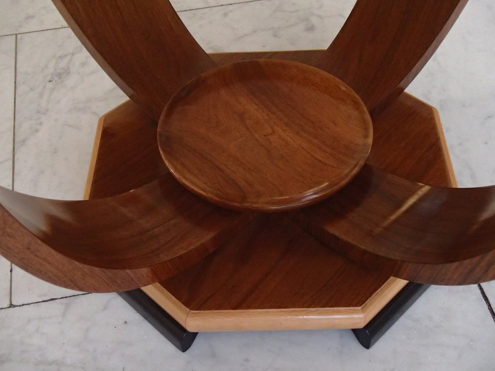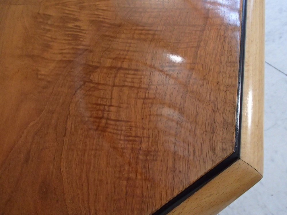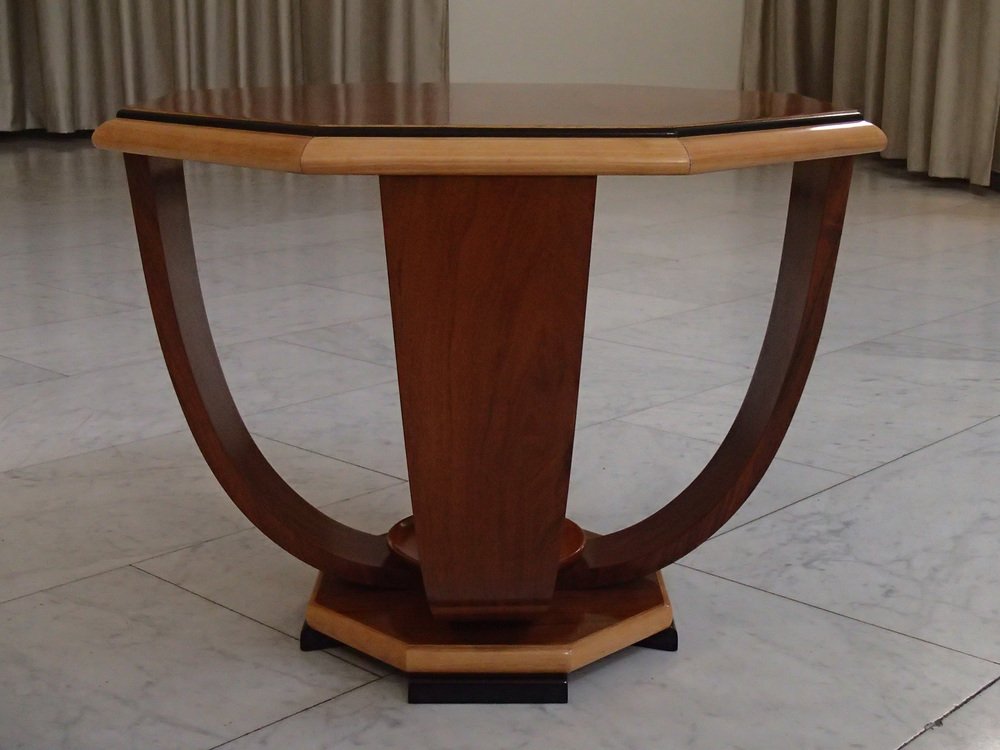 Art Deco Walnuss Couchtisch auf 4 gebogenen Beinen, 1935