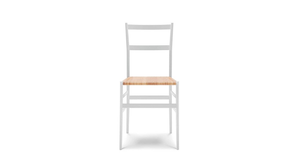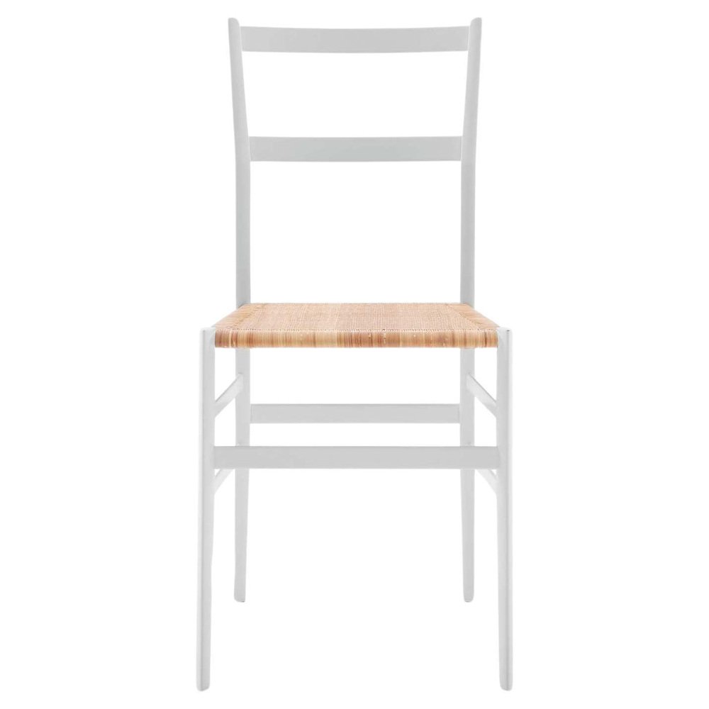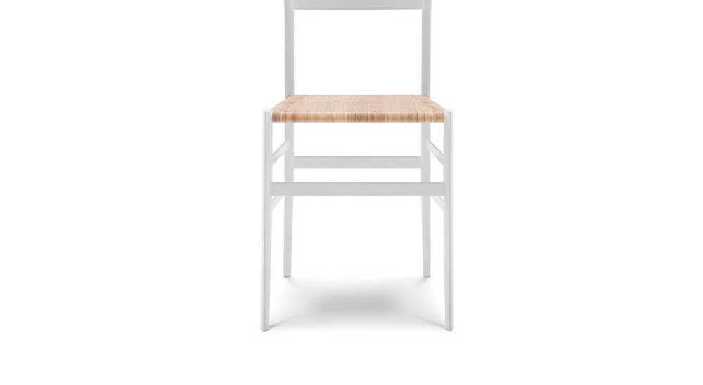 Gio Ponti Frassino Tinto Bianco Aswood Superleggera Chair For Cassina Manufactured since 1957, the 699 Superleggera wood chair is the rare combination of the architect’s innovative quest and the cutting-edge experimentation by the Meda-based company, becoming the indisputable icon and masterpiece of modernity and extreme artisanal elegance. A chair that took Gio Ponti years to perfect, paring down the triangular section of the legs to only 18 millimeters to reach the actual minimum weight of just 1,700 grams. STRUCTURE Structure in solid ash. LEGS with triangular tube of only 18 millimeters and minimum weight of 1,700 grams. SEAT Upholstered or in rattan. A highlight of Cassina’s catalogue since 1957, the 699 Superleggera represents the perfect outcome between the creative imagination of the architect Gio Ponti, and Cassina’s manufacturing excellence, an undisputed icon that is both of- the-moment and pays tribute to traditional artisanal skills. Superleggera demonstrates the constructive prowess of the MedaMade craftsmen: the challenge they faced, of making an extra-light chair, was overcome with the Superleggera’s legs having a cross-section of just eighteen millimetres, the whole weighing a mere 1,700 grams! While the frame exploits the inherent lightness and flexibility of ashwood, the seat surround is in beech, which is more close-grained and stronger. The wood parts are created by machine, and hand-finished, glue being applied with a brush, the excess being wiped off, and the seat being hand-woven. Thus do crafts expertise and industrial innovation come together in what we could call a “prime object”, informed by the chair-making traditions of Chiavari, in Liguria, northern Italy. The Superleggera is available both in the classic version or with coloured legs, as well as with a padded seat. Important information regarding images of products: Please note that some of the images show other colors and variations of the model, these images are only to present interior design proposals. The item that is selling is on the first image.
