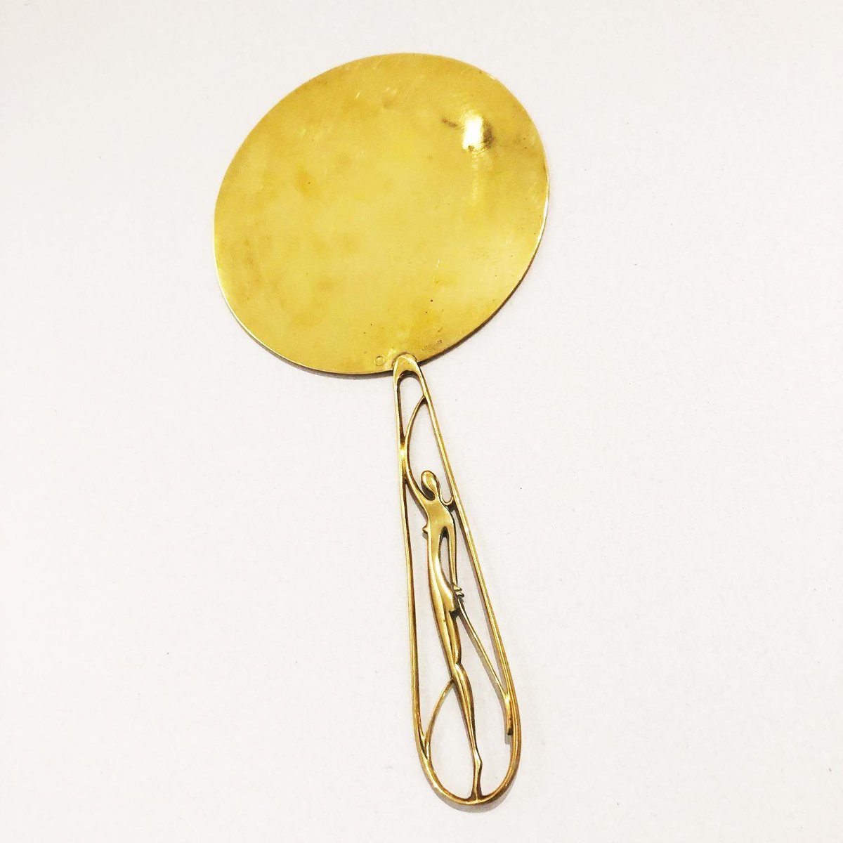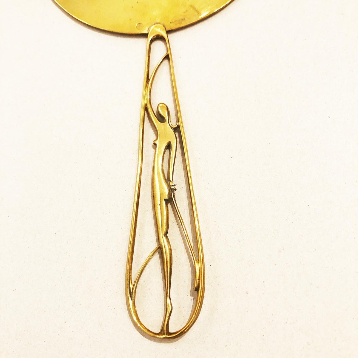Austrian Art Deco Brass Hand Mirror from Werkstätte Hagenauer, Vienna