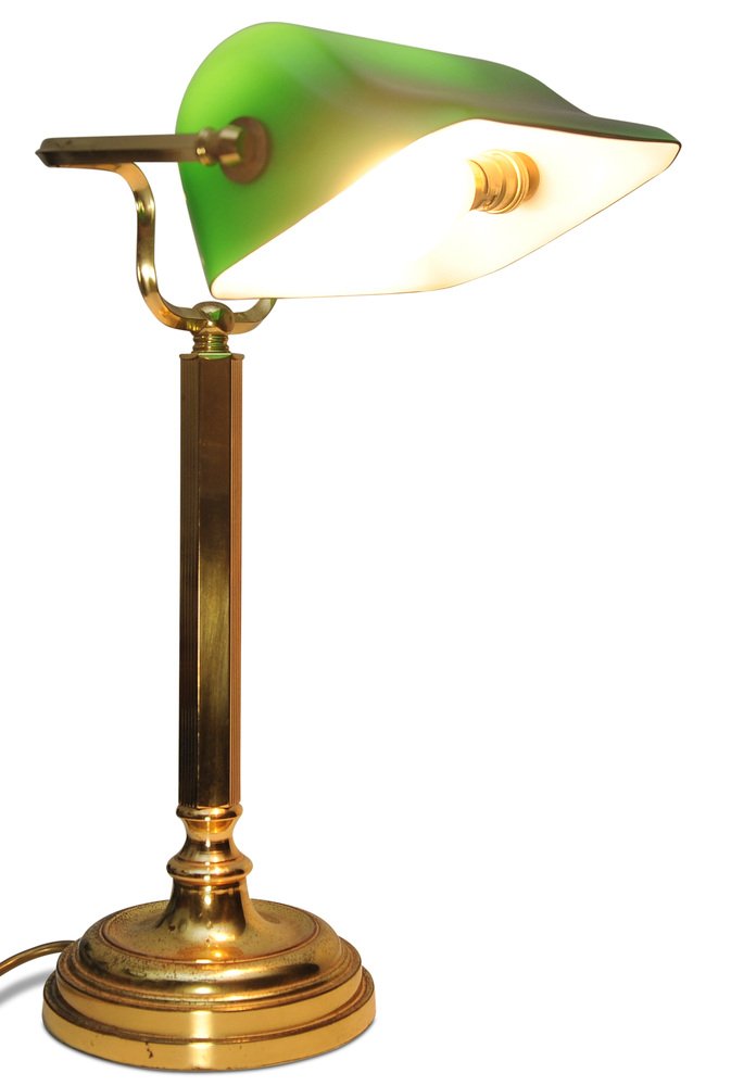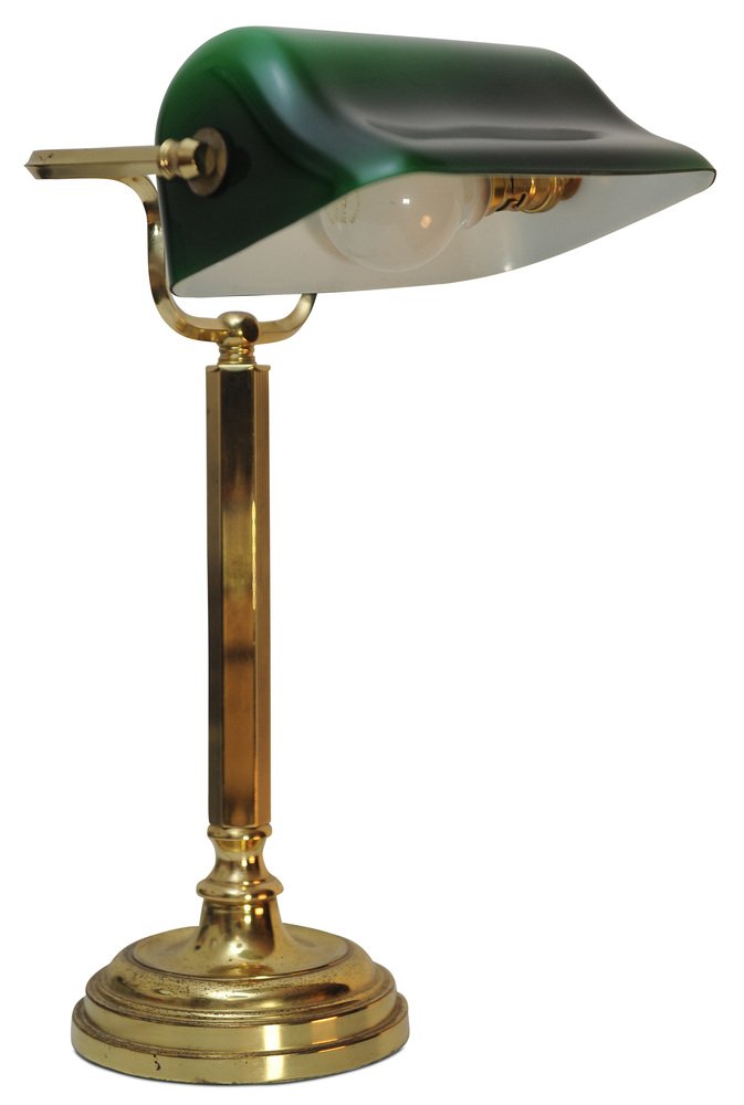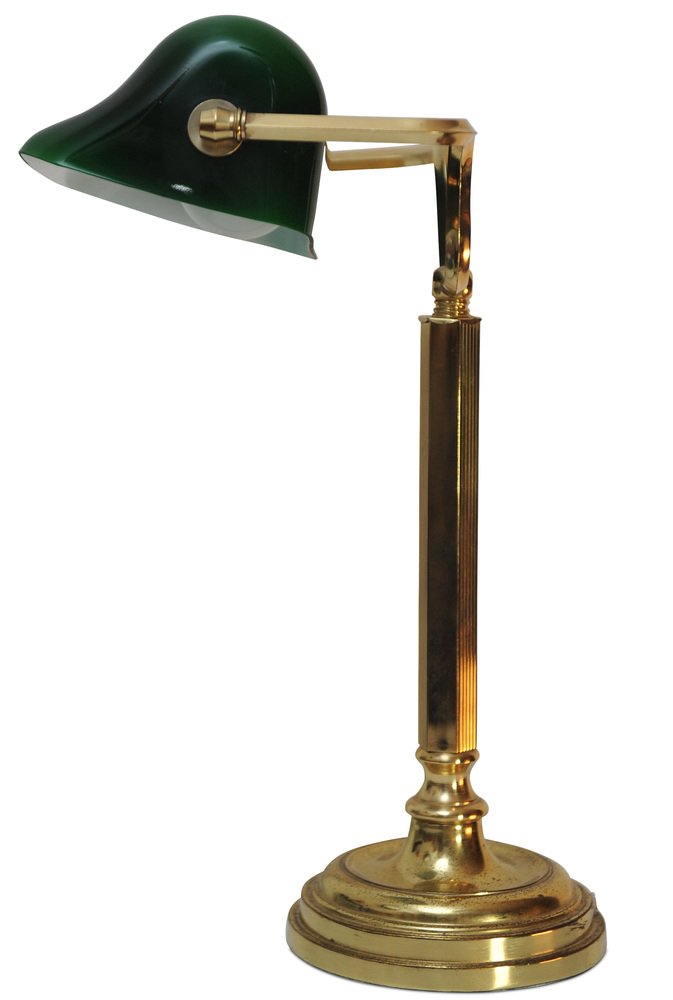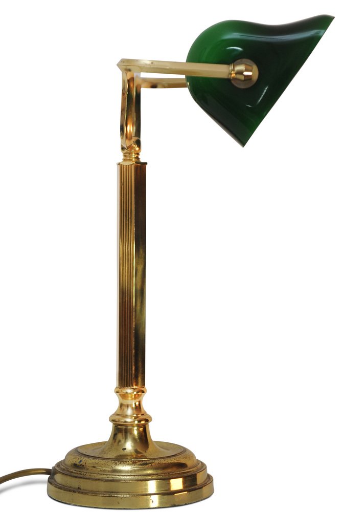 Bankierlampe aus Messing mit verstellbarem grün glasiertem Schirm, 1950er