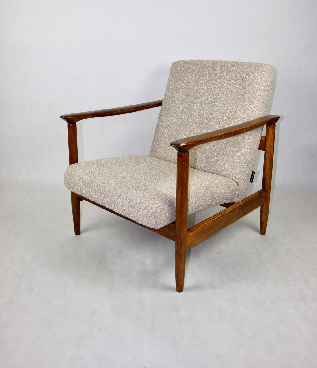 Beige Bouclé GFM-142 Armlehnstuhl Edmund Homa zugeschrieben, 1970er