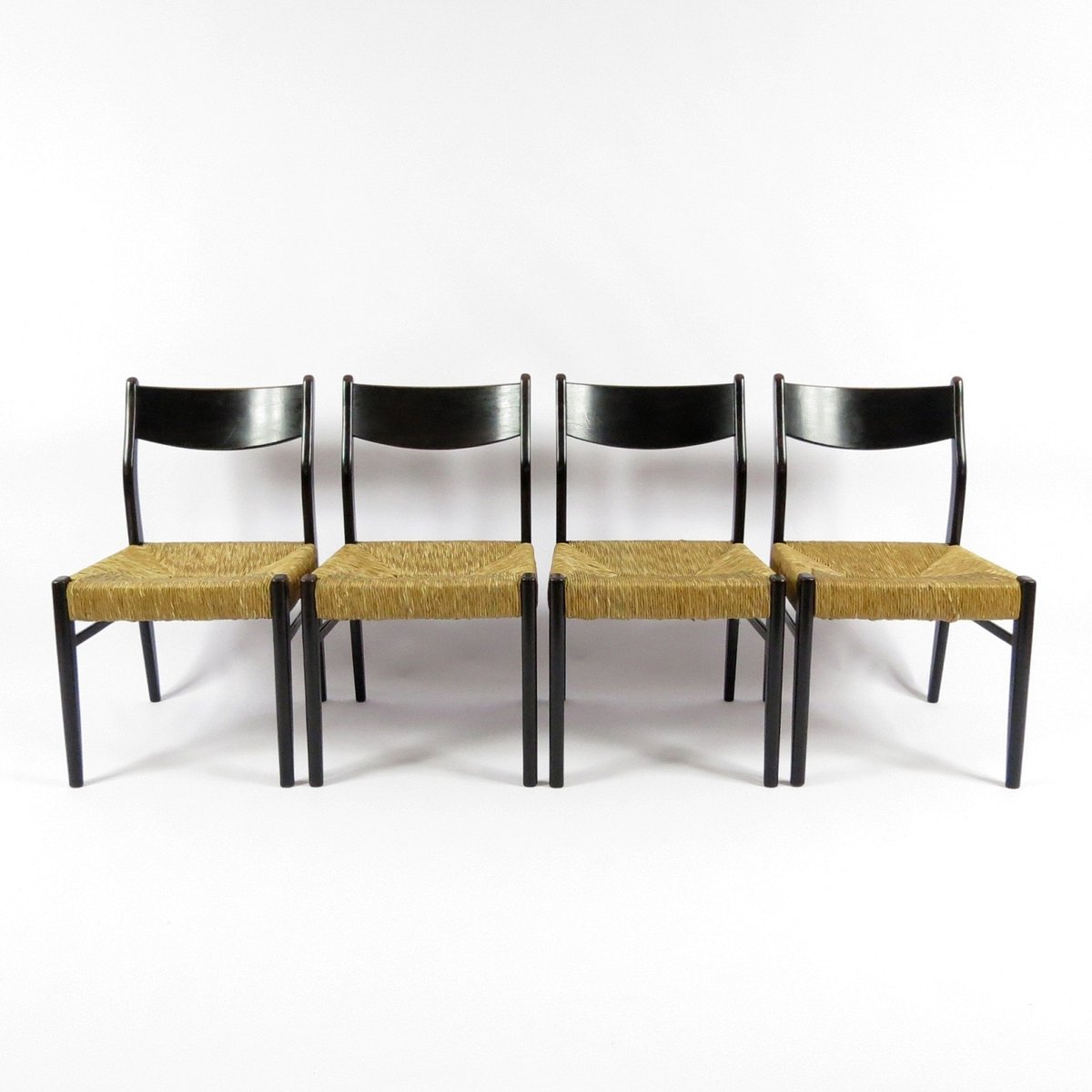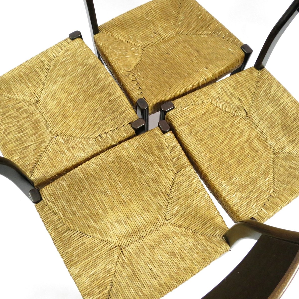 Belgische Stroh Esszimmerstühle, 1950er, 4er Set