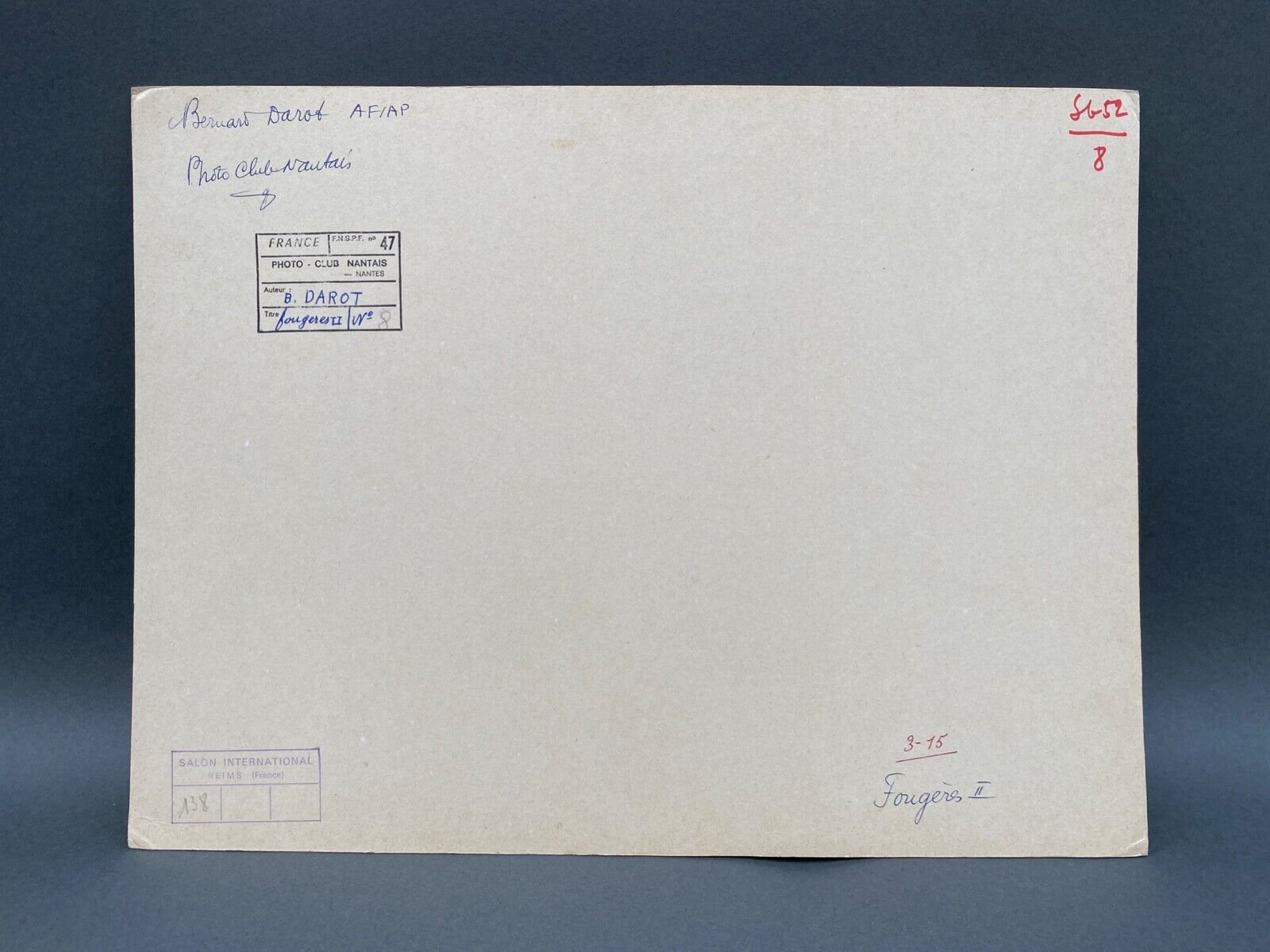 This photograph was taken by Bernard Darot. It is marked “Bernard Darot AFIAP Ciné-Club Nantais”, it is entitled “Fougères II”.