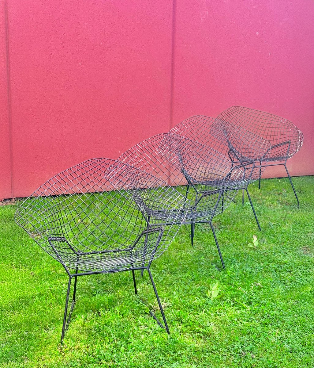1943 zog Bertoia nach Kalifornien, um dort mit Charles und Ray Eames für die Evans Products Company zu arbeiten. Ungefähr zur gleichen Zeit begann er außerdem damit, Skulpturen zu kreieren. Im Jahr 1950 ließ er sich in Bally, Pennsylvania, nieder, wo er sein eigenes Möbel- und Skulpturenatelier eröffnete. In seinen Möbeldesigns dieser Zeit wurden geschweißte und verformte Drähte verarbeitet. Zu dieser Designart gehört der Bertoia Stuhl (1952), dessen verchromte Stahldrähte sich durch das Gewicht des auf dem Stuhl Sitzenden neu formen. Der Möbelhersteller Knoll International vermarktete mehrere Versionen dieses Stuhls und das davon gewonnene Honorar gab ihm die Chance, sich hauptsächlich der Bildhauerei zu widmen.