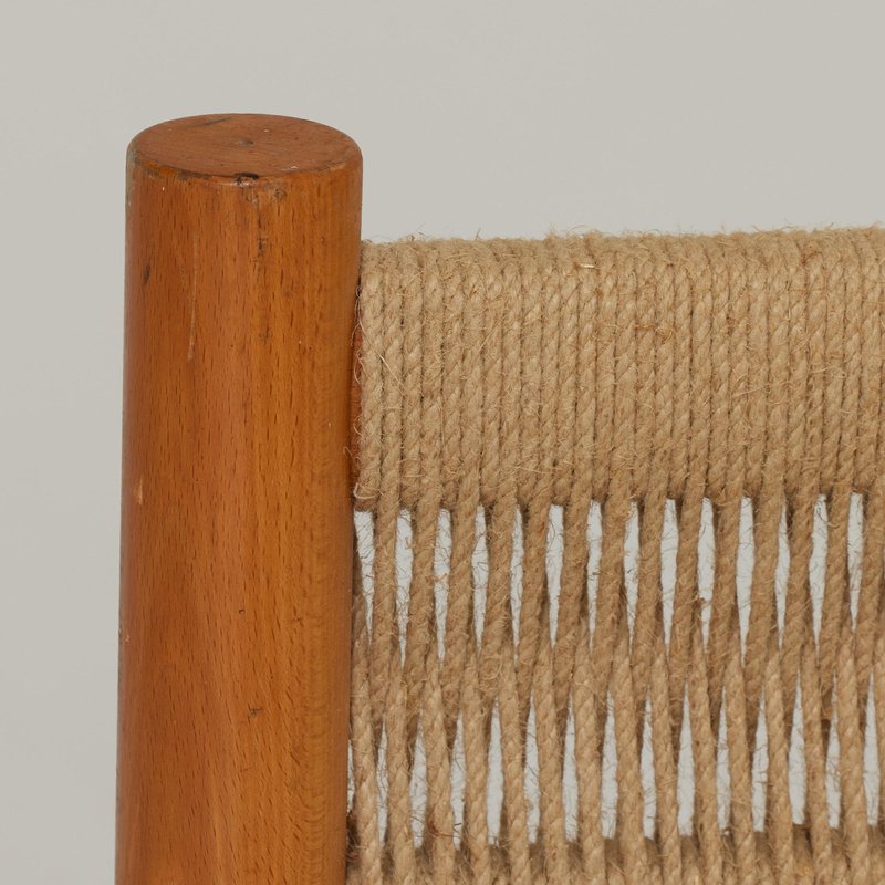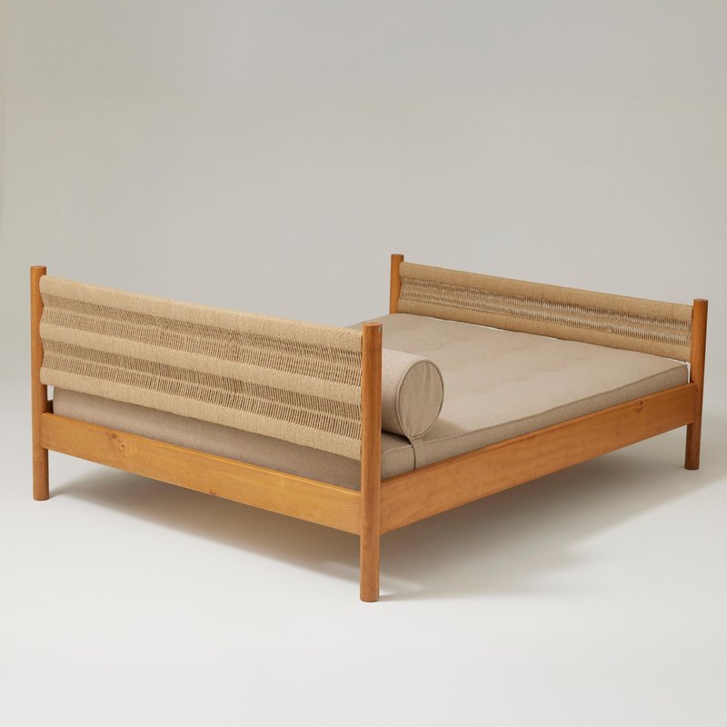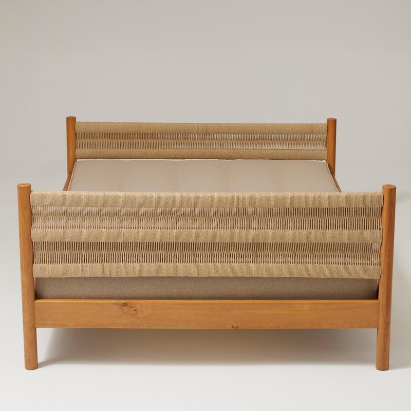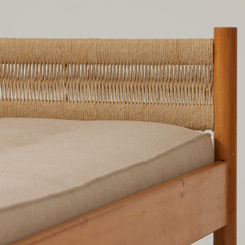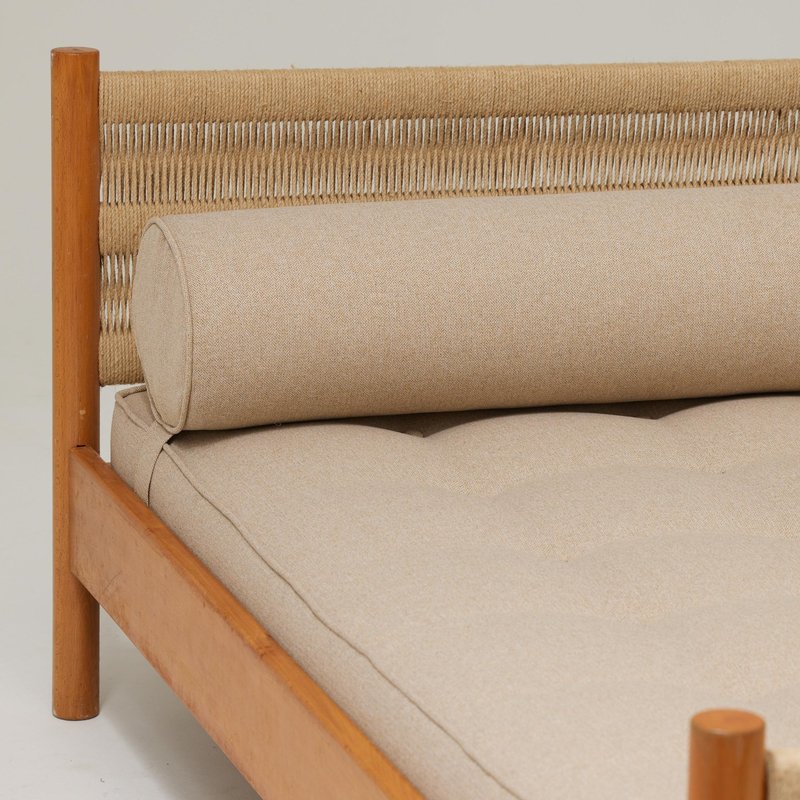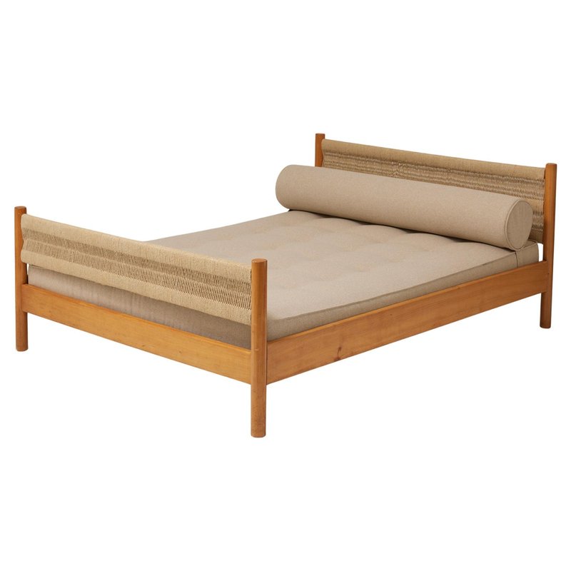 Bed designed by Charlotte Perriand for Meribel, circa 1960. Manufactured in France. Pinewood and rope In good original condition with minor wear consistent with age and use, preserving a beautiful patina. Charlotte Perriand (1903-1999). She was born in Paris, in 1903 and attended the École de l'Union centrale des Arts décoratifs from 1920-1925. Charlotte Perriand designed furniture made of anodized aluminium and chromium-plated steel, showing it at the 1927 Salon d'Automne in Paris. After meeting Le Corbusier, Charlotte Perriand worked with him and Pierre Jeanneret until 1937. The revolutionary tubular steel furnishings and system furniture designed by the three were presented as Équipement de l'habitation (home equipment) at the 1929 Salon d'Automne where they were widely acclaimed. In 1930, the Union Des Artistes Modernes (UAM) was founded in Paris, a group that viewed itself as a countermovement challenging such establishment organizations as the Salon d'Automne and also advocated Art Déco and Modernism. from 1931 Charlotte Perriand showed her own work solo there. In 1937, Charlotte Perriand and Pierre Jeanneret collaborated on designing a mountain chalet of sheet aluminium, which they showed at the Exposition Internationale des Arts et Techniques dans la Vie Moderne and later they came up with plans for prefab houses made of aluminium. In 1940, Charlotte Perriand became a design consultant to the Japanese Board of Trade. She lived in Japan, until 1946, and from then on Charlotte Perriand's designs reveal overtones of the Japanese feeling for form, as shown by the 1953, chair Synthèse des Arts.
