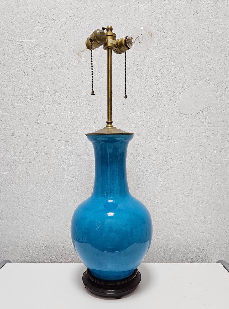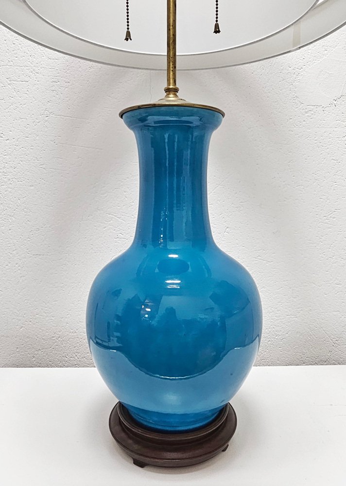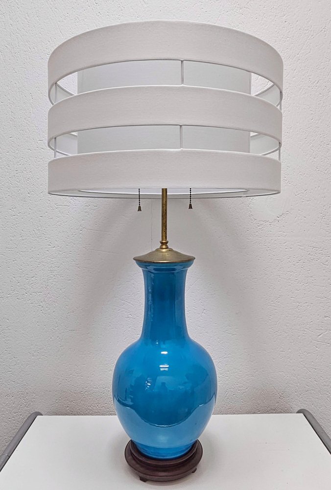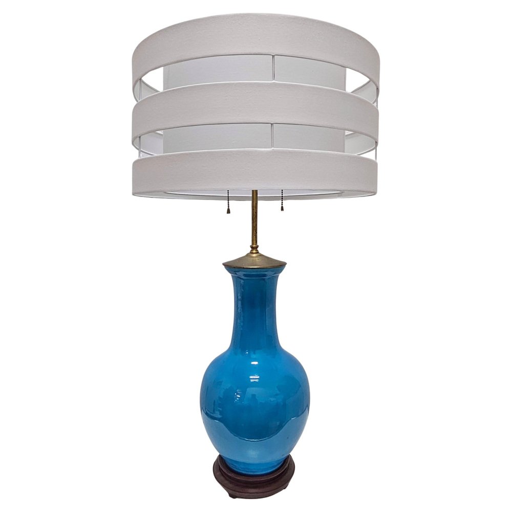 Blaue Mid-Century Tischlampe aus Keramik von Warren Kessler New York, USA, 1950er