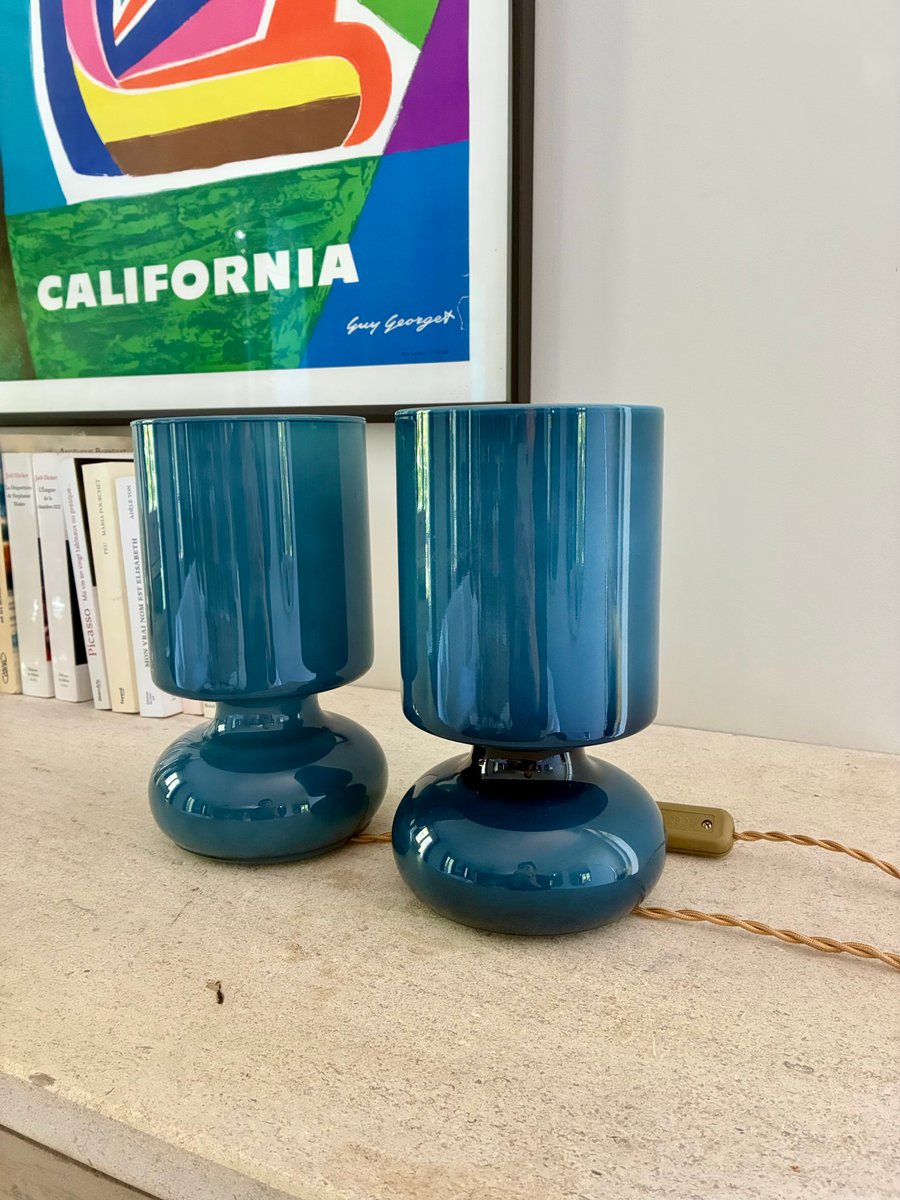 Blaue Space Age Nachttischlampen aus Glas, 1980, 2er Set