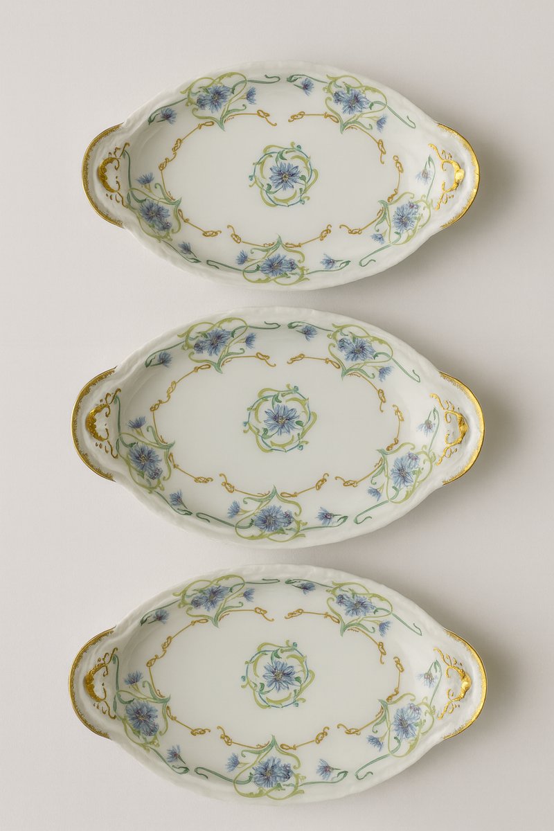 Each piece bears the hallmark of Haviland’s exceptional craftsmanship: the translucence of fine Limoges porcelain, the lightness of its hand-painted floral garlands, and the brilliance of gold accents.