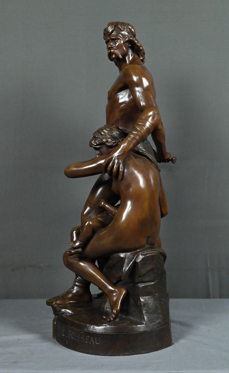 Émile Boisseau (1842-1923) was a French sculptor. Trained first in Bourges and then at the École des Beaux-Arts in Paris, he became one of the leading figures of academic sculpture at the end of the 19th century. A student of Bonnassieux and Dumont, he exhibited regularly at the Salon from 1868 onwards. His work is characterized by a strong narrative sensibility, a taste for allegorical and patriotic subjects, and a solid mastery of group compositions. Among his best-known works are "The Defense of the Hearth," a monumental version of which stands in the Square d'Ajaccio in Paris, as well as "Twilight" and "Captive Love." Boisseau also held several institutional positions: director of the Clamecy Museum, vice-president of the Society of French Artists, and president of the art property syndicate. He was made an Officer of the Legion of Honor in 1900. He died in Paris in 1923, leaving behind a body of work marked by emotion, academic rigor, and profound humanism.