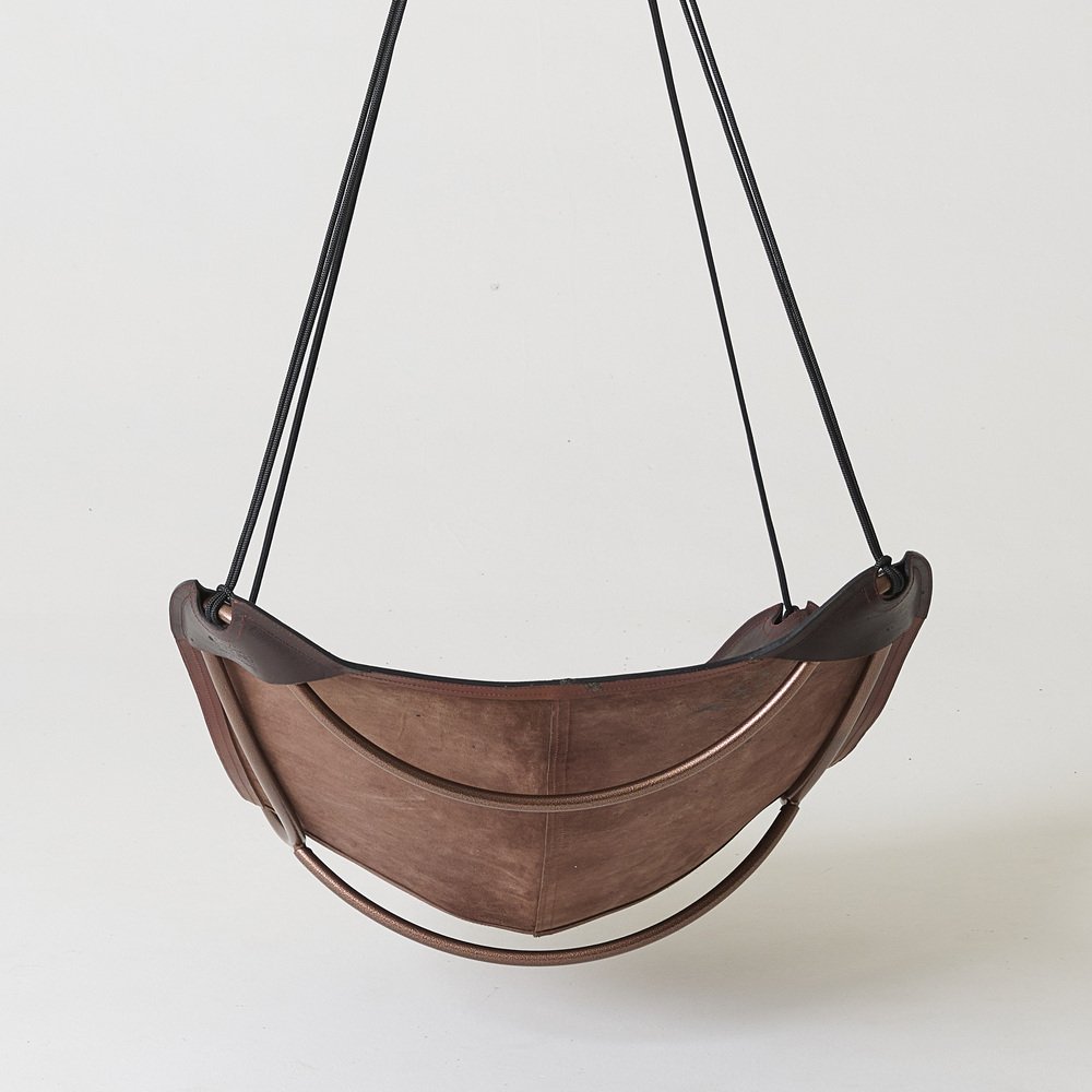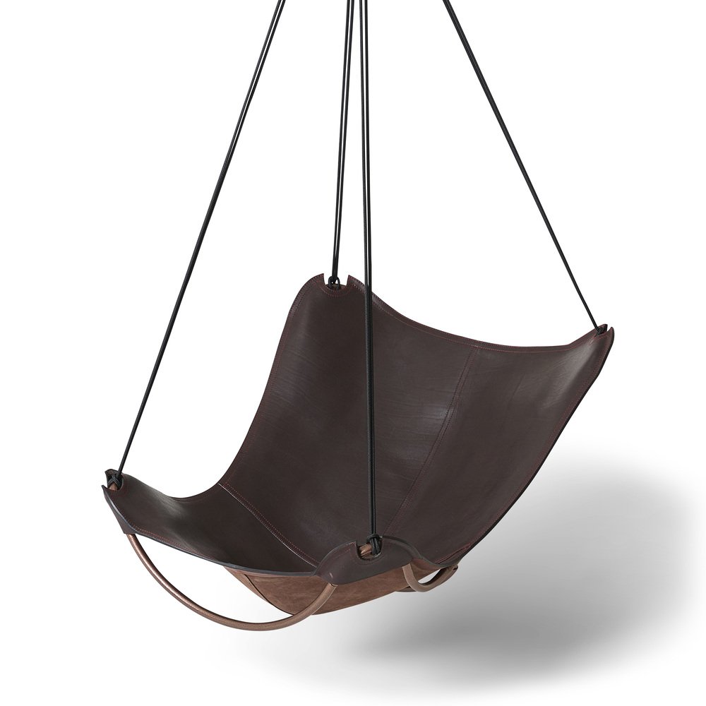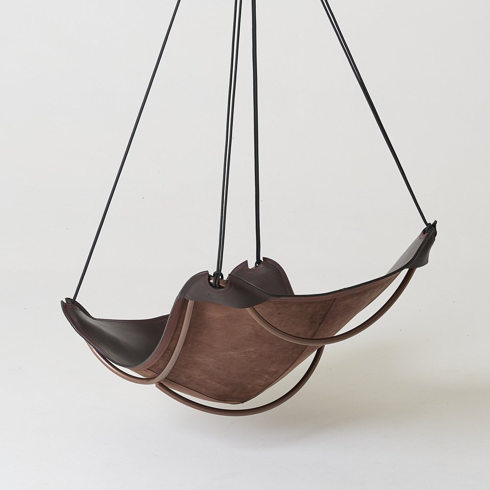 Brauner Butterfly Hängesessel aus Leder von Studio Stirling