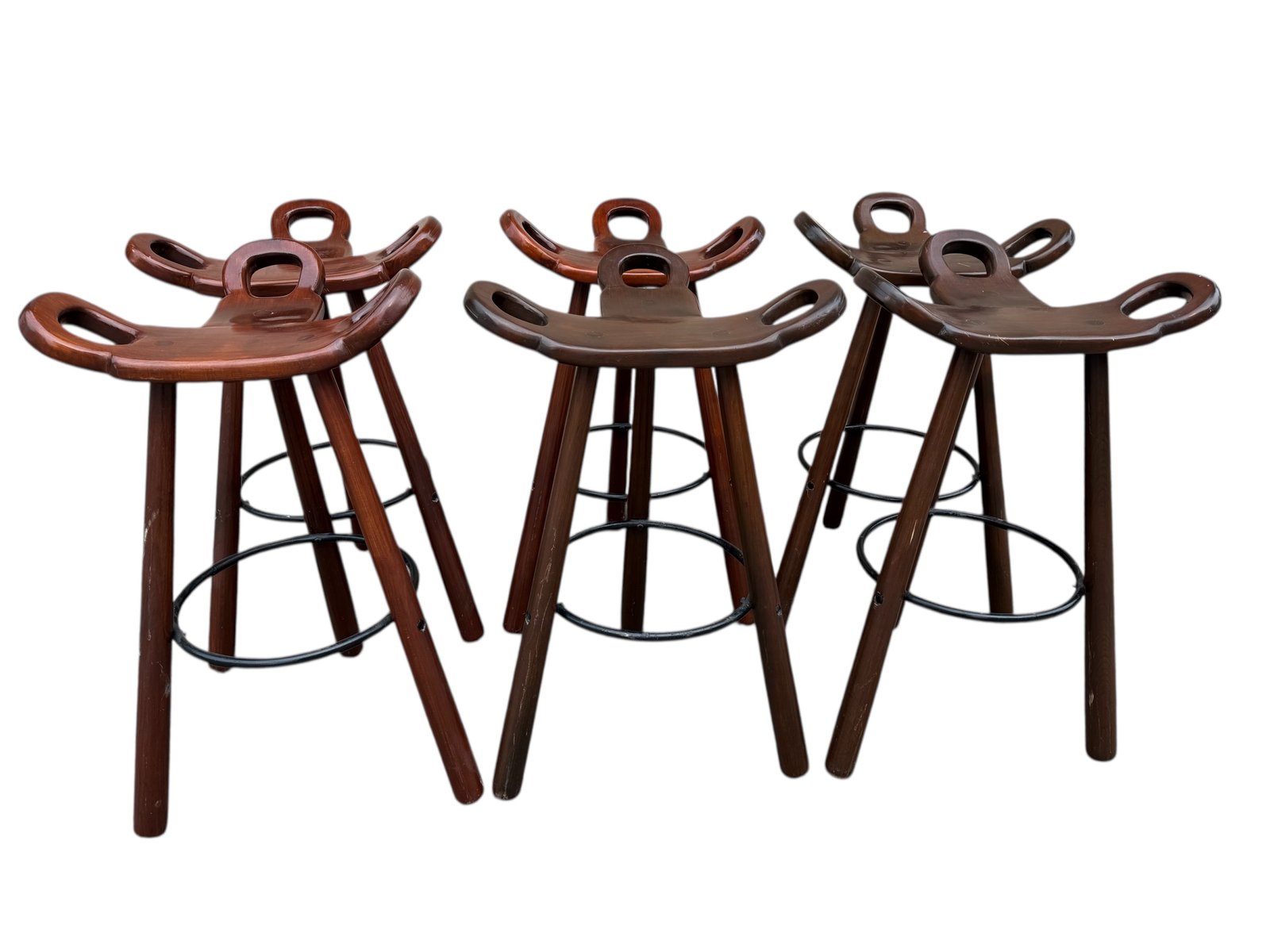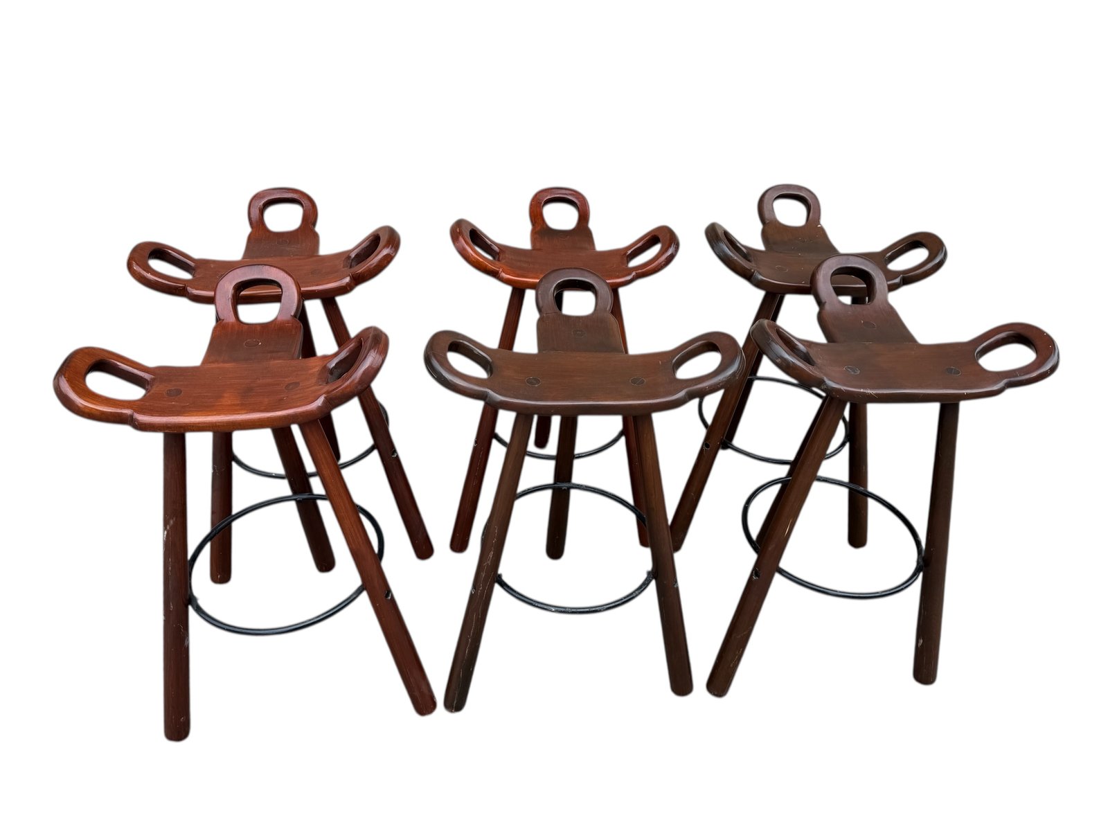 Brutalistische Marbella Barhocker Sergio Rodrigues zugeschrieben, Spanien, 1960er, 6er Set