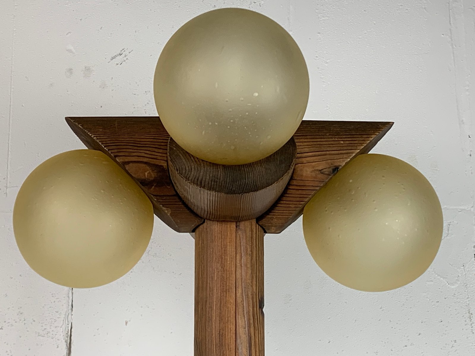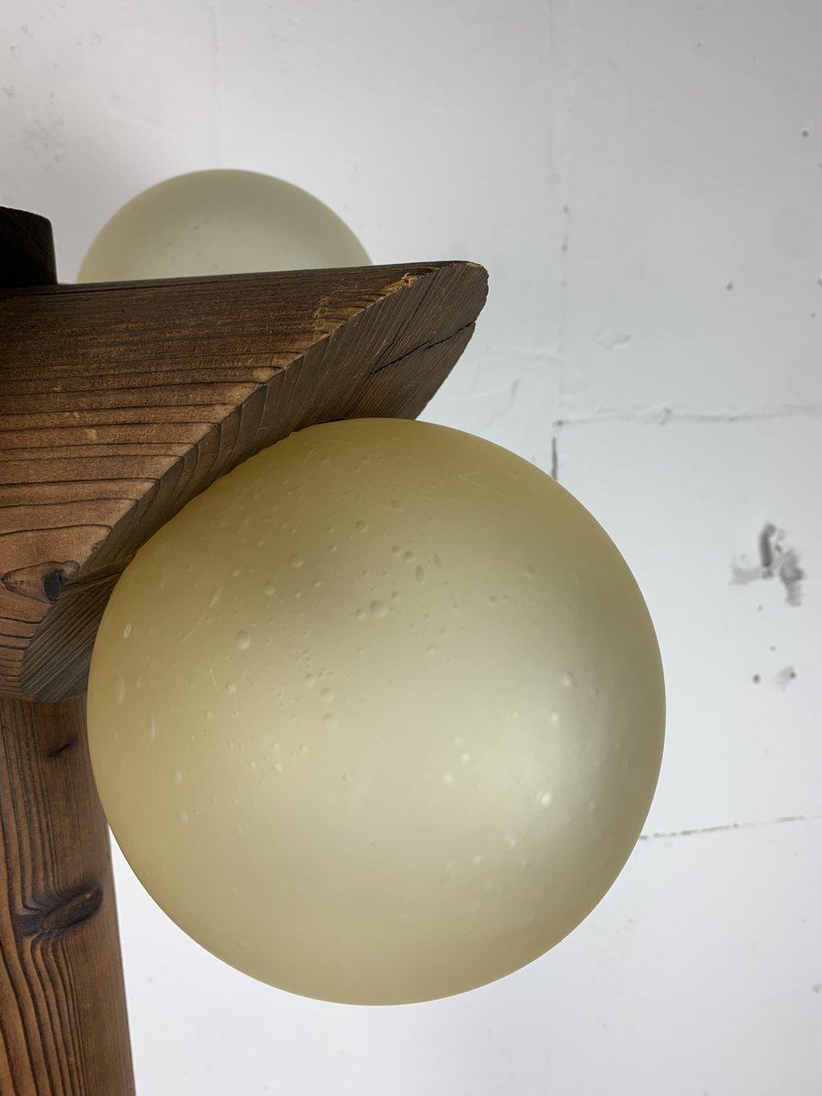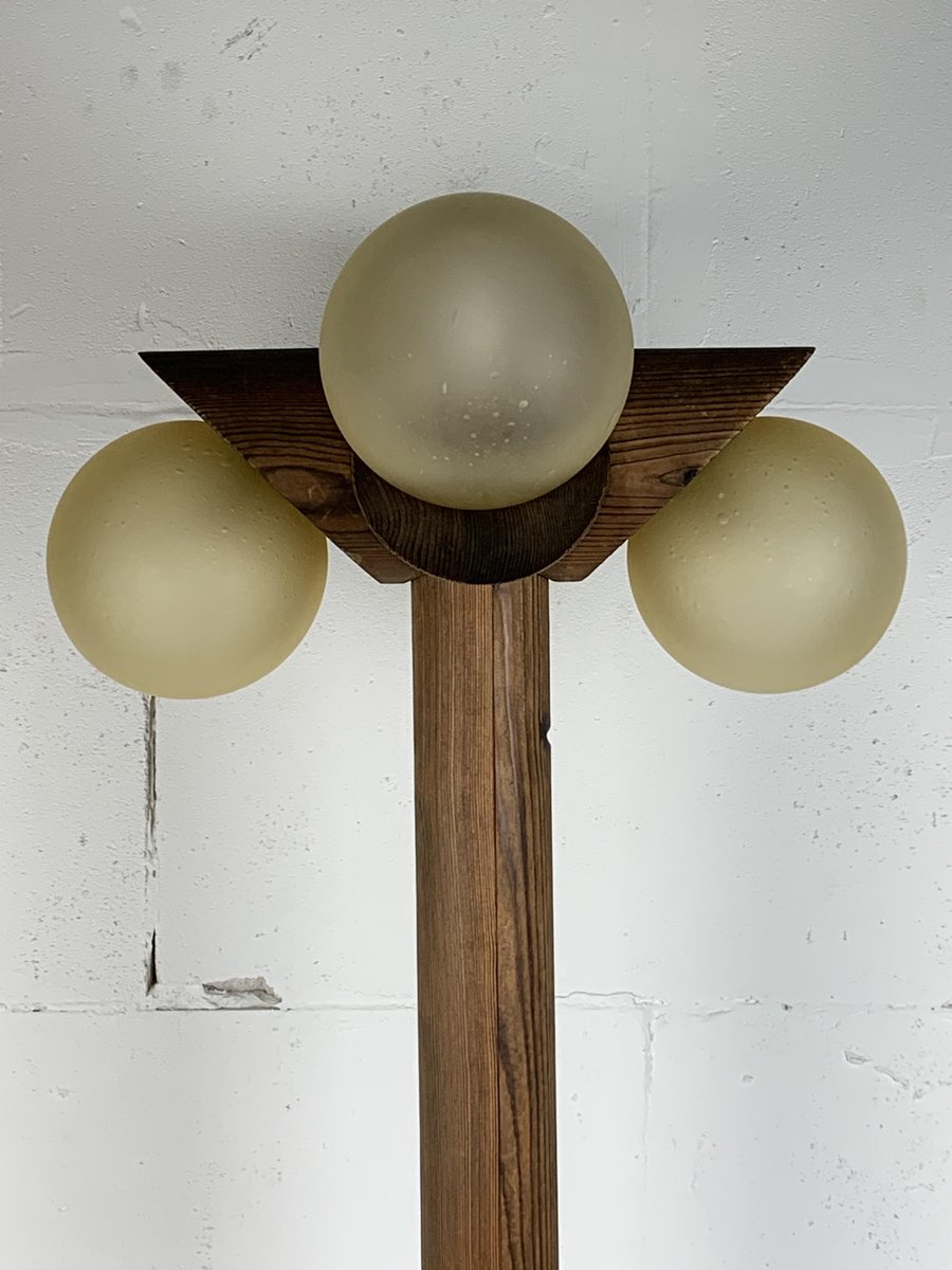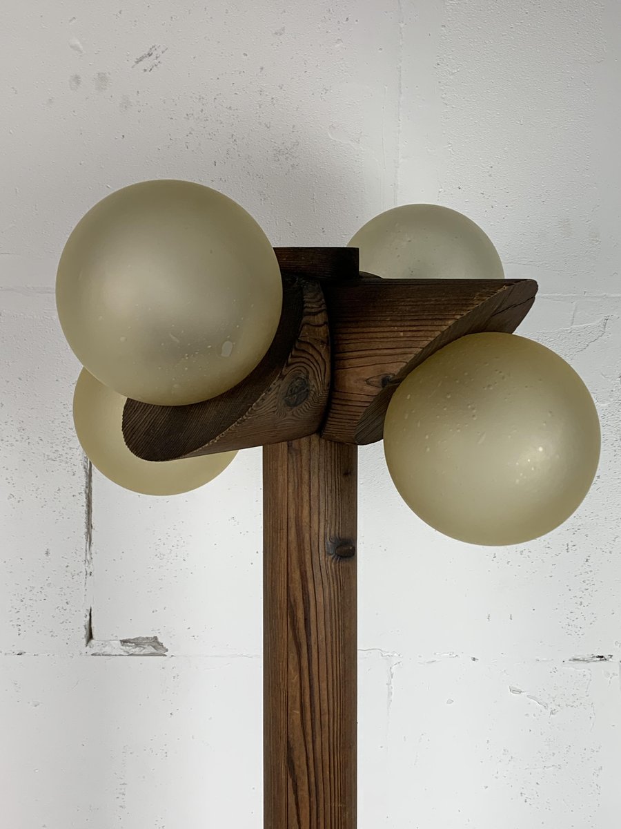 Brutalistische Mid-Century Stehlampe aus Eiche mit 4 Kugeln von Temde Leuchten, 1970er