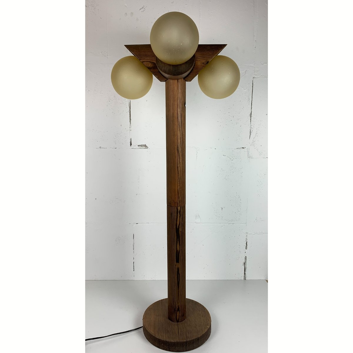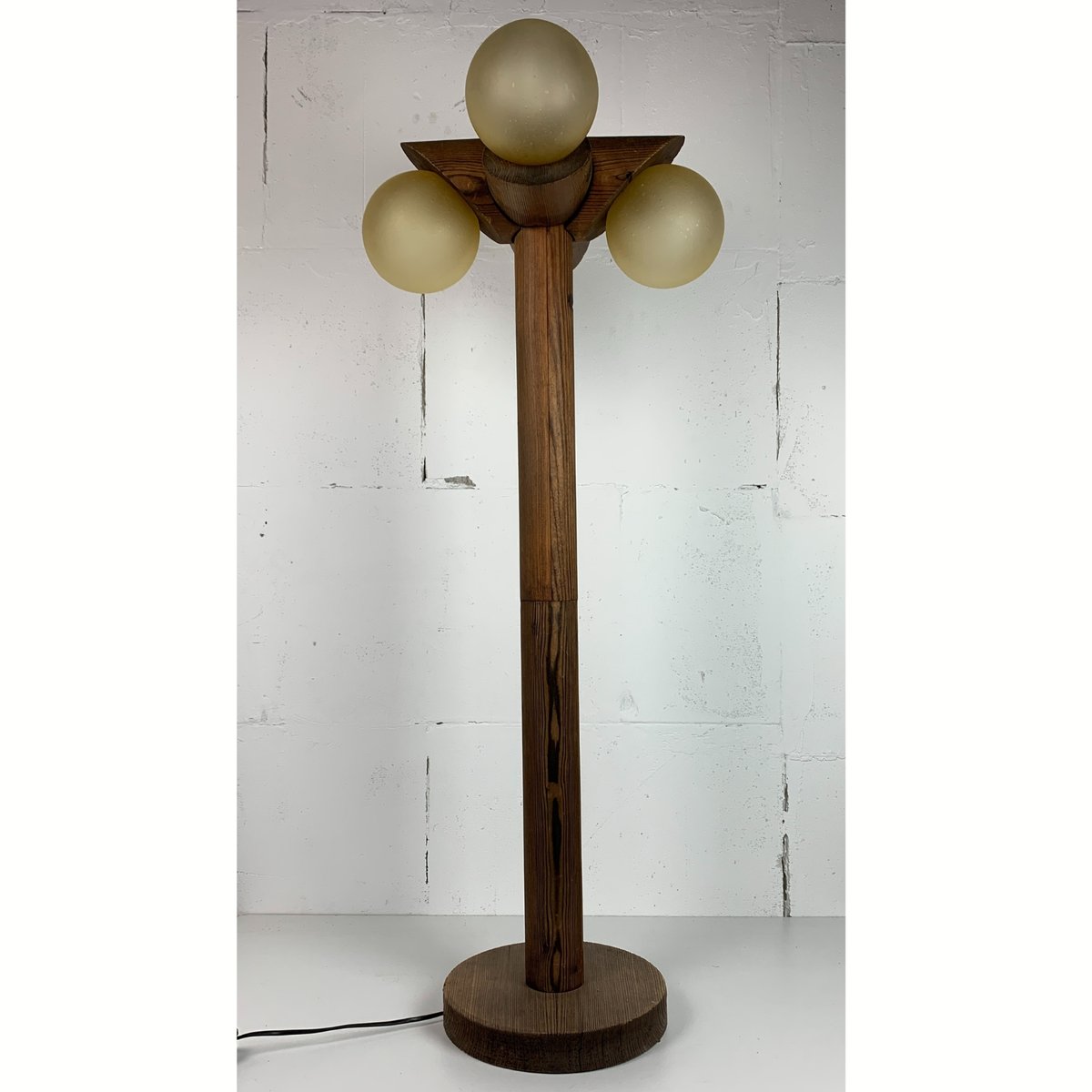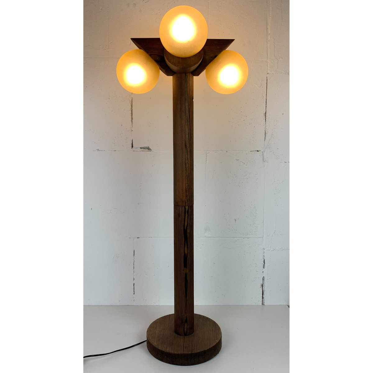 Brutalistische Mid-Century Stehlampe aus Eiche mit 4 Kugeln von Temde Leuchten, 1970er