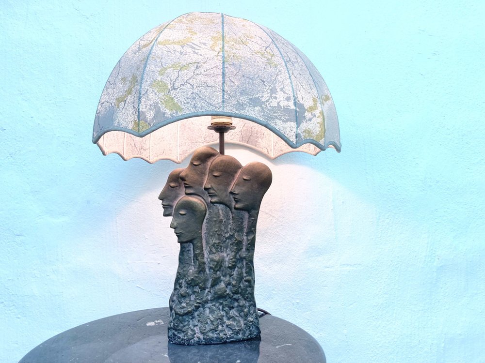 Brutalistische Skulpturale Tischlampe Person Group mit Lampenschirm, 1980er