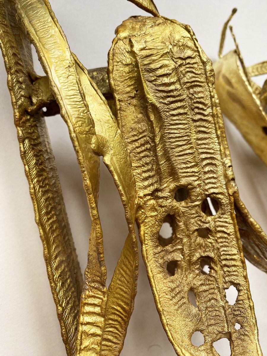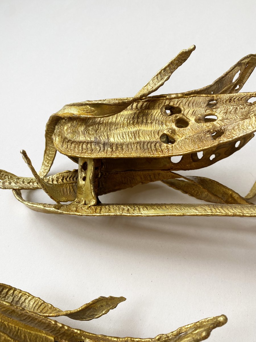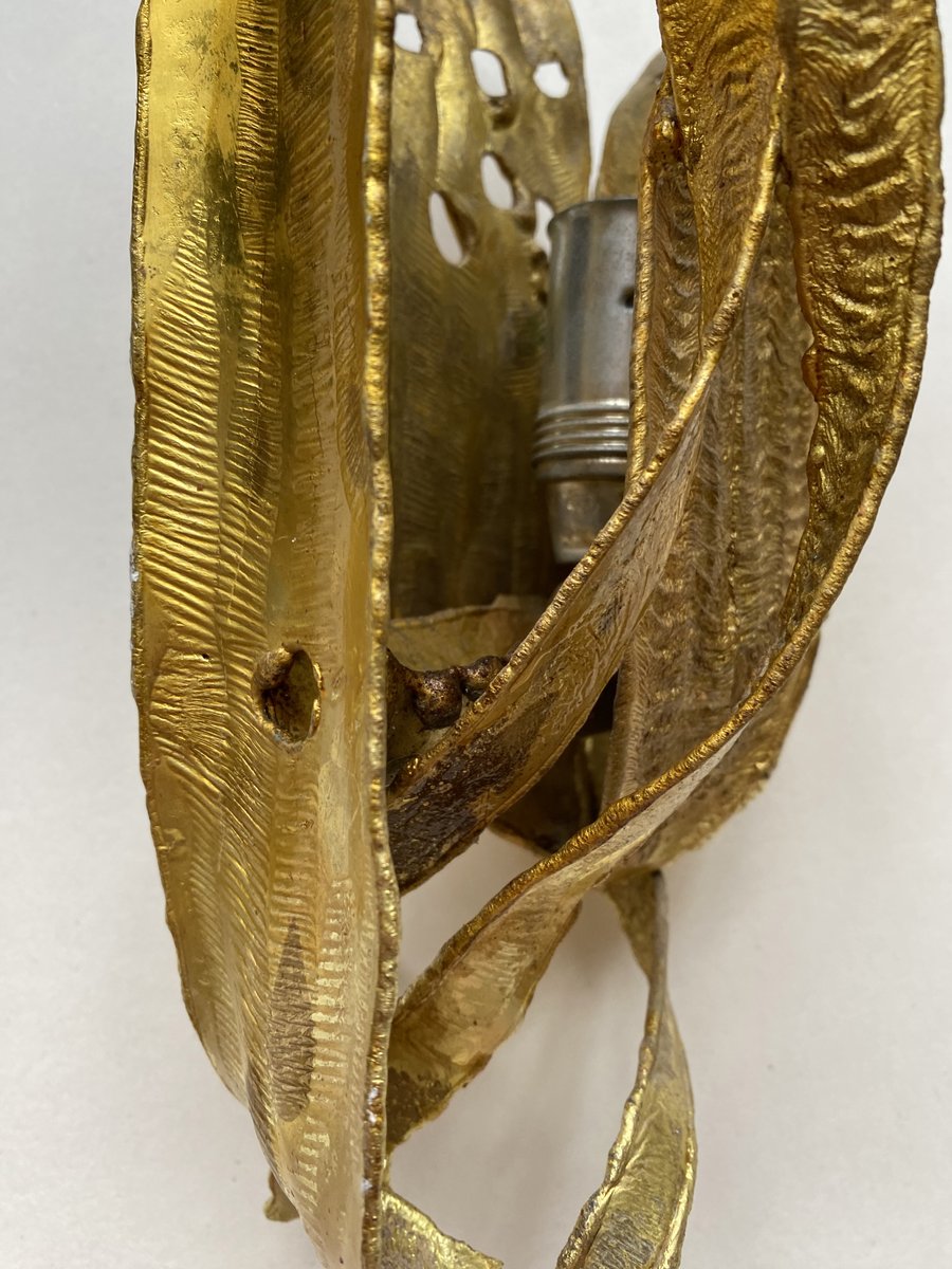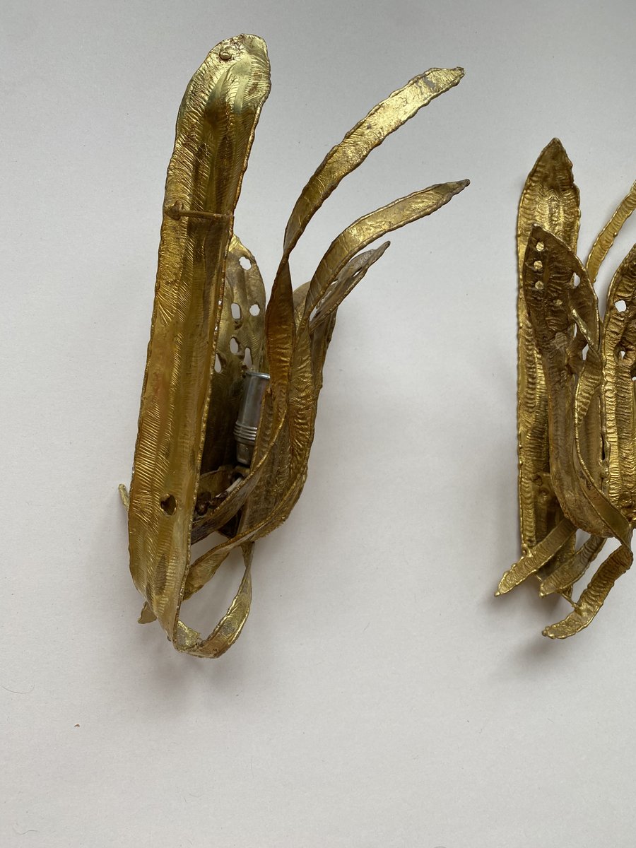 Brutalistische Wandleuchten mit vergoldetem Blattwerk, Paul Moerenhout zugeschrieben, 1970er, 2er Set