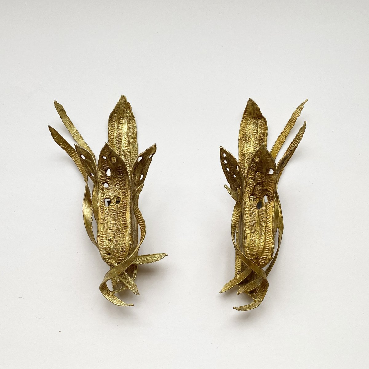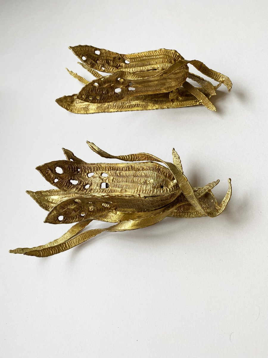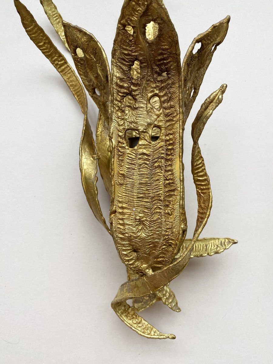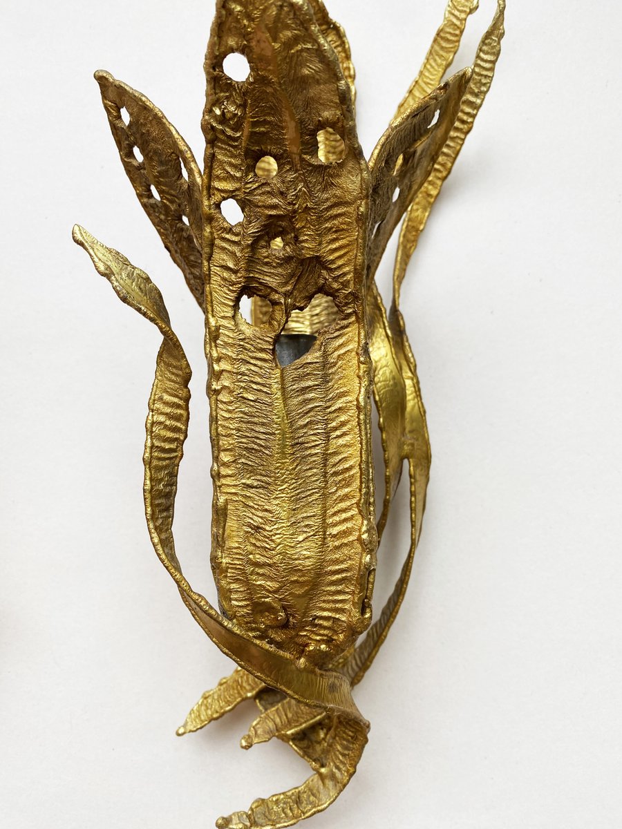 Brutalistische Wandleuchten mit vergoldetem Blattwerk, Paul Moerenhout zugeschrieben, 1970er, 2er Set