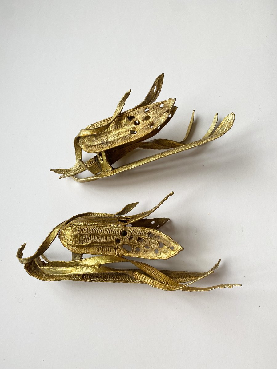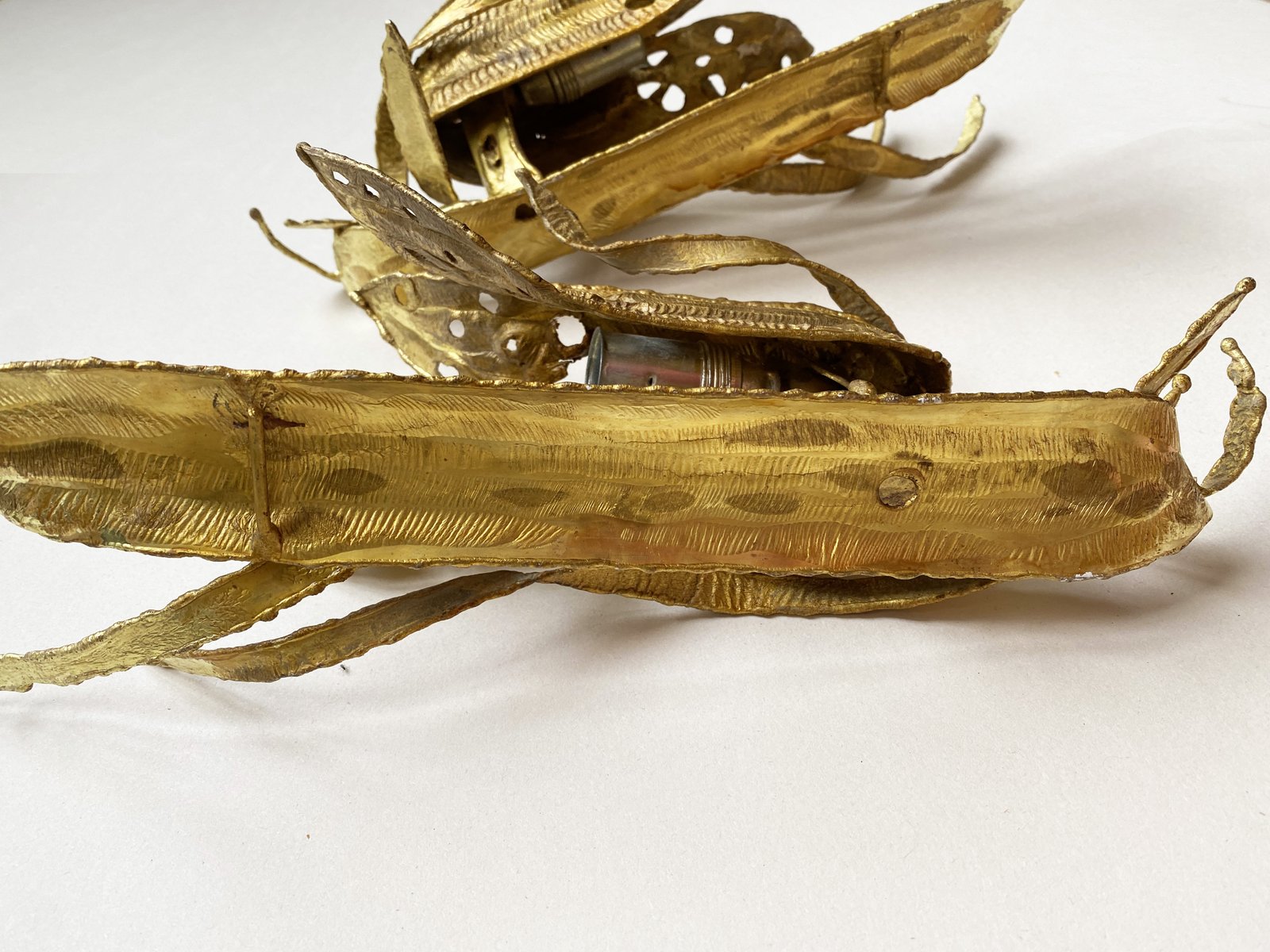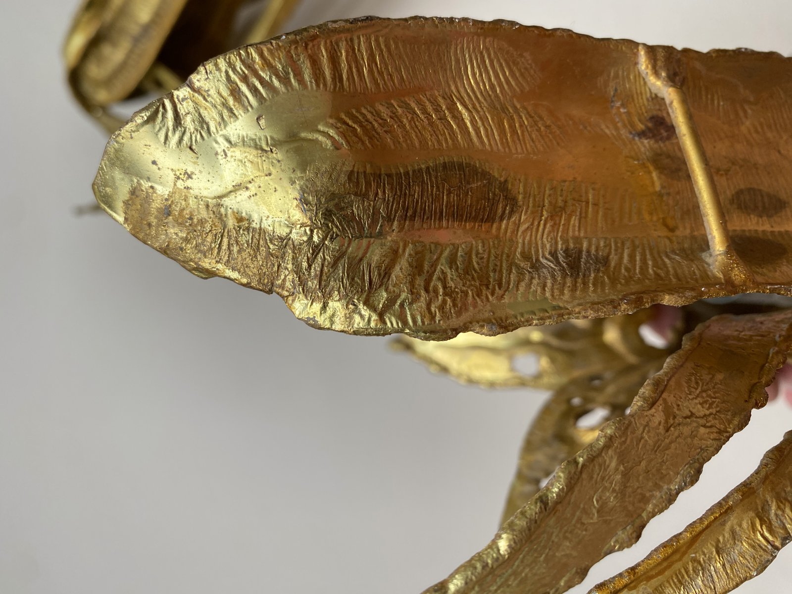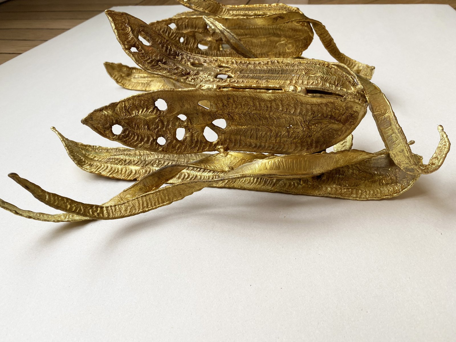 Brutalistische Wandleuchten mit vergoldetem Blattwerk, Paul Moerenhout zugeschrieben, 1970er, 2er Set