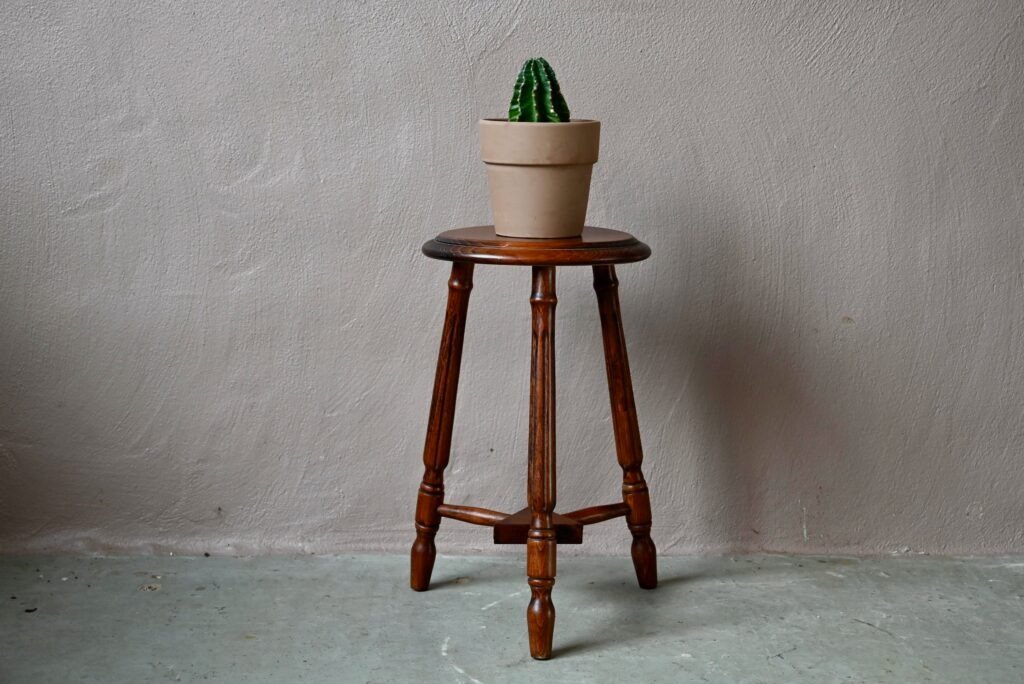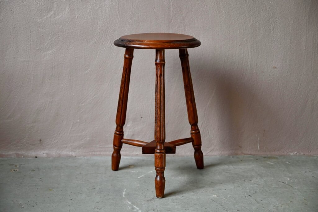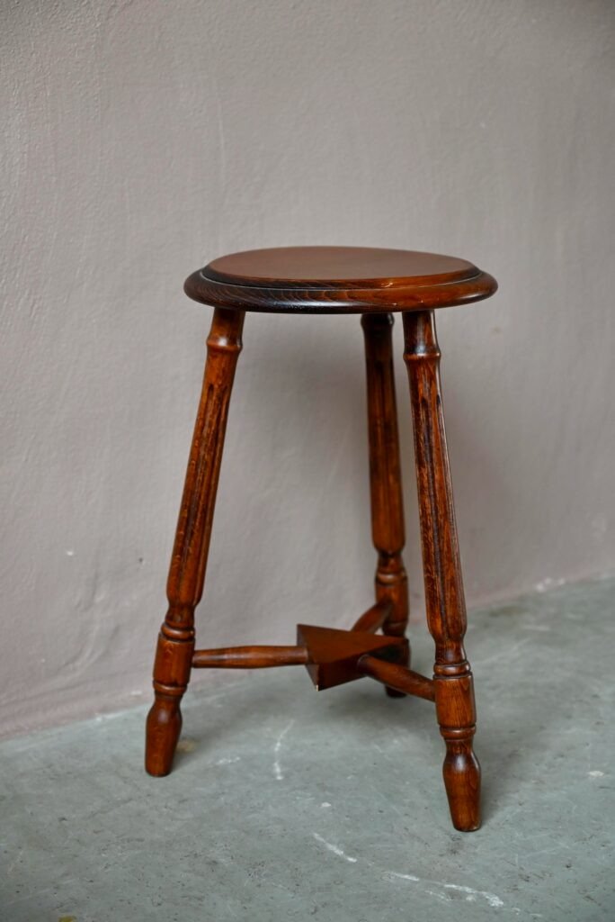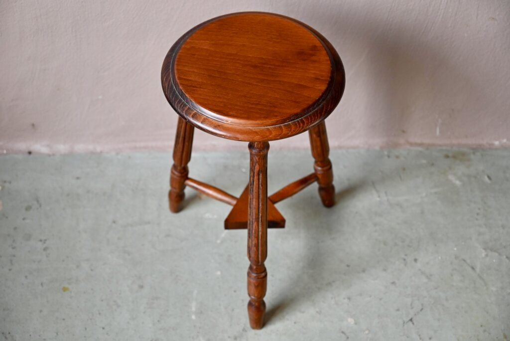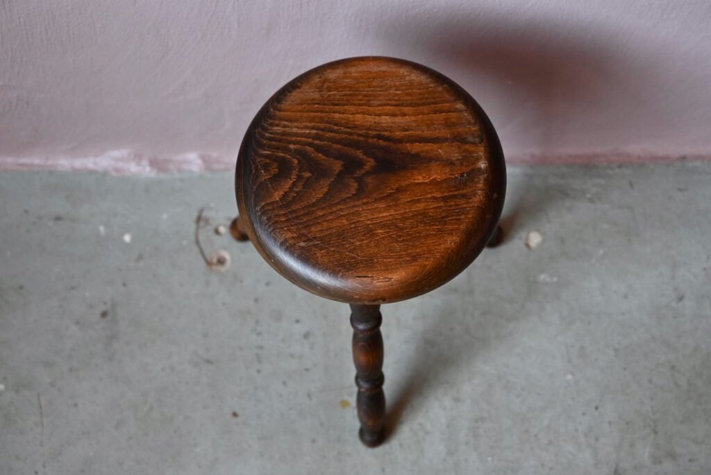 Brutalistischer Dreibeinhocker aus Holz, 1940er