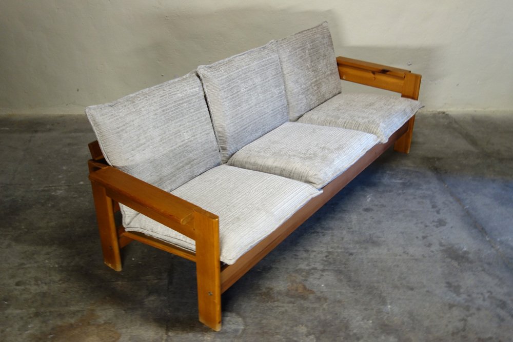 Brutalistisches Sofa aus Kiefernholz, Frankreich, 1960er
