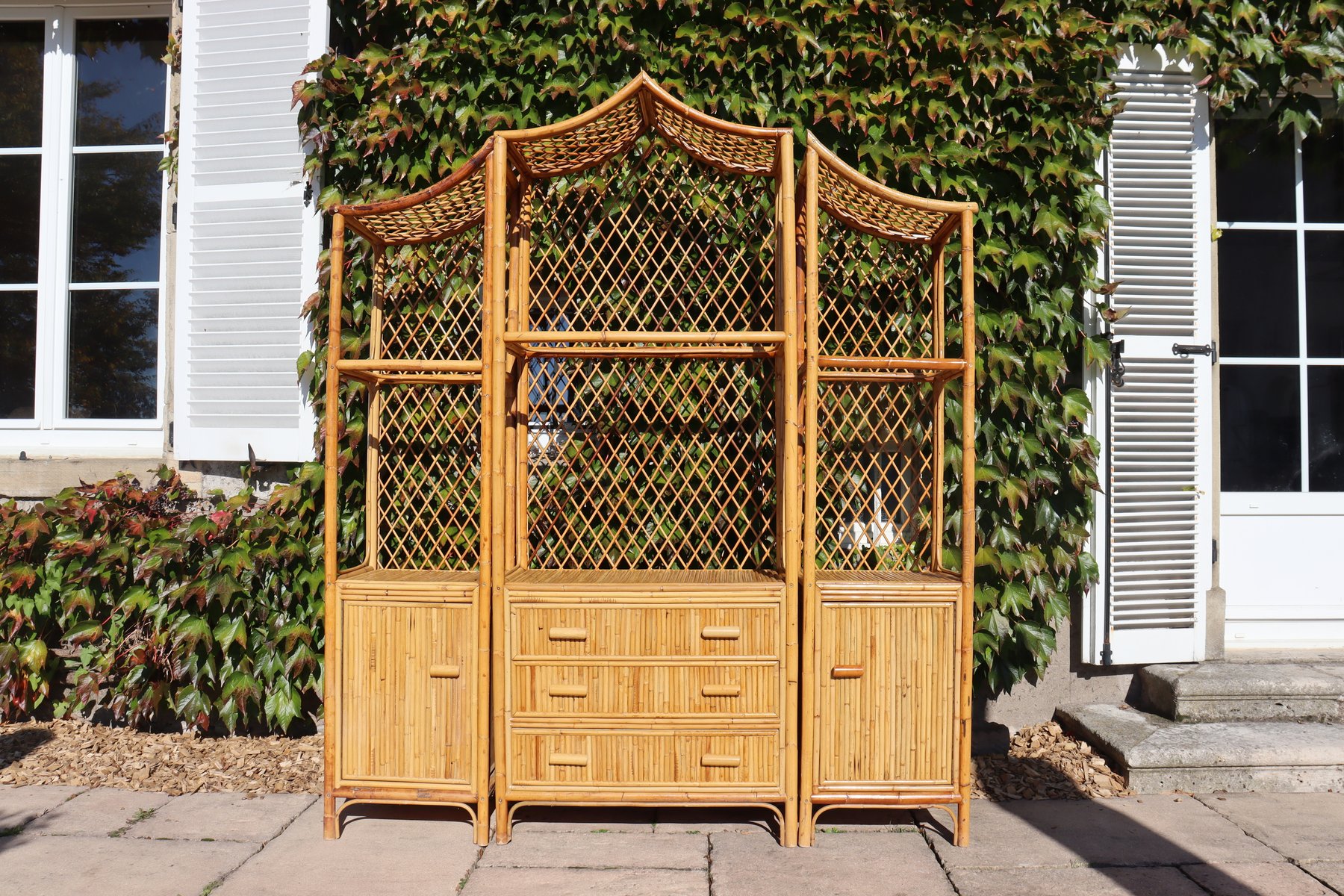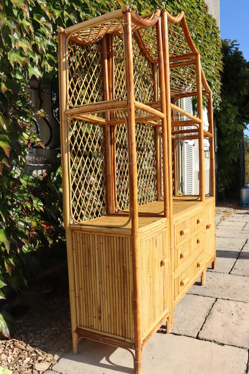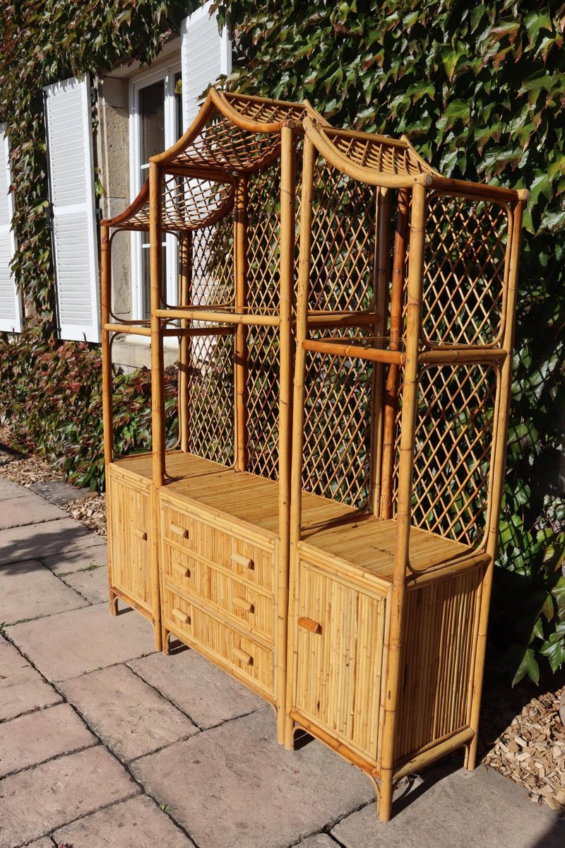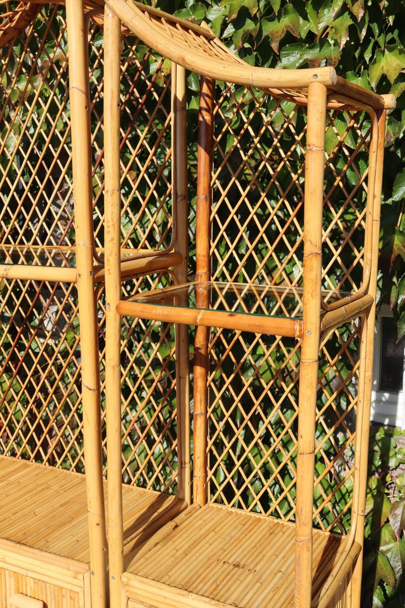 Bücherregal im Pagodenstil aus Rattan, 1970er