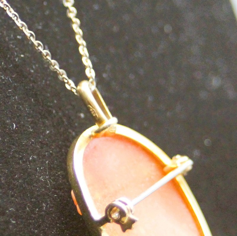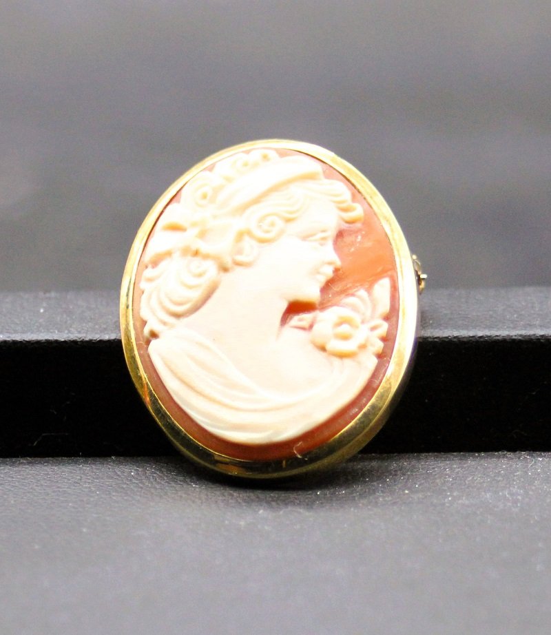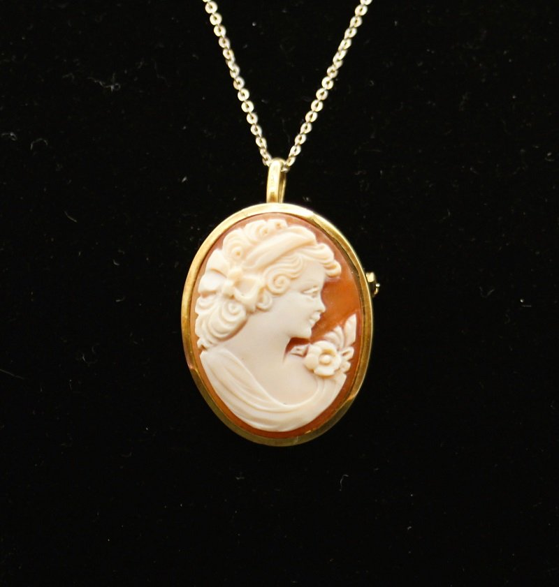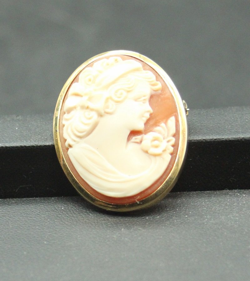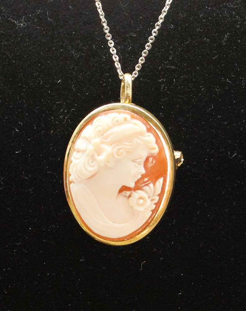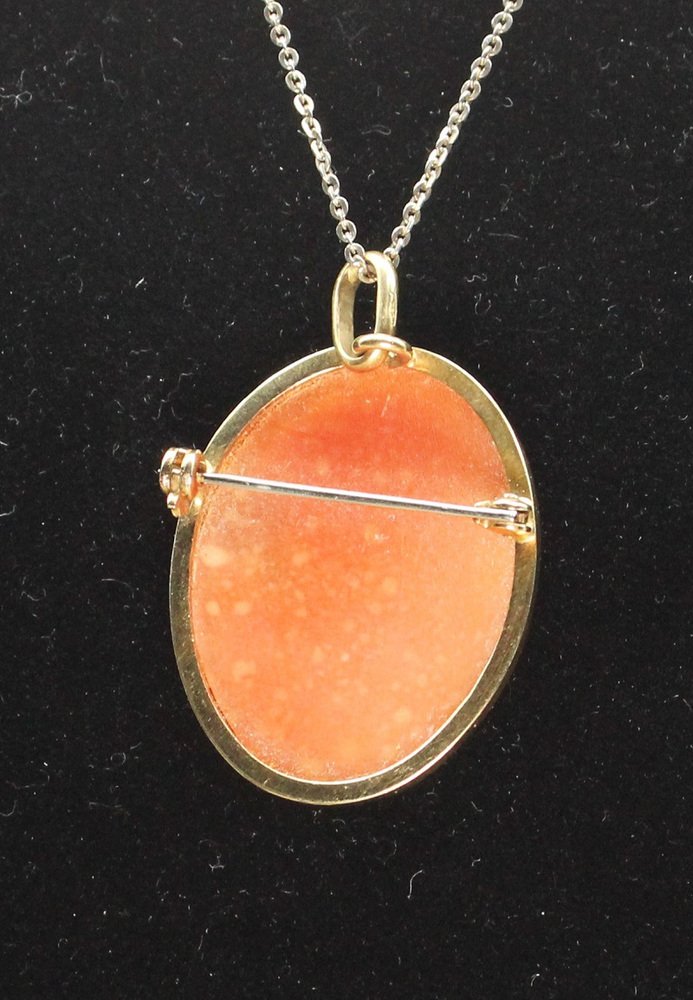 Cameo Brosche und Anhänger aus Muschel und Gold