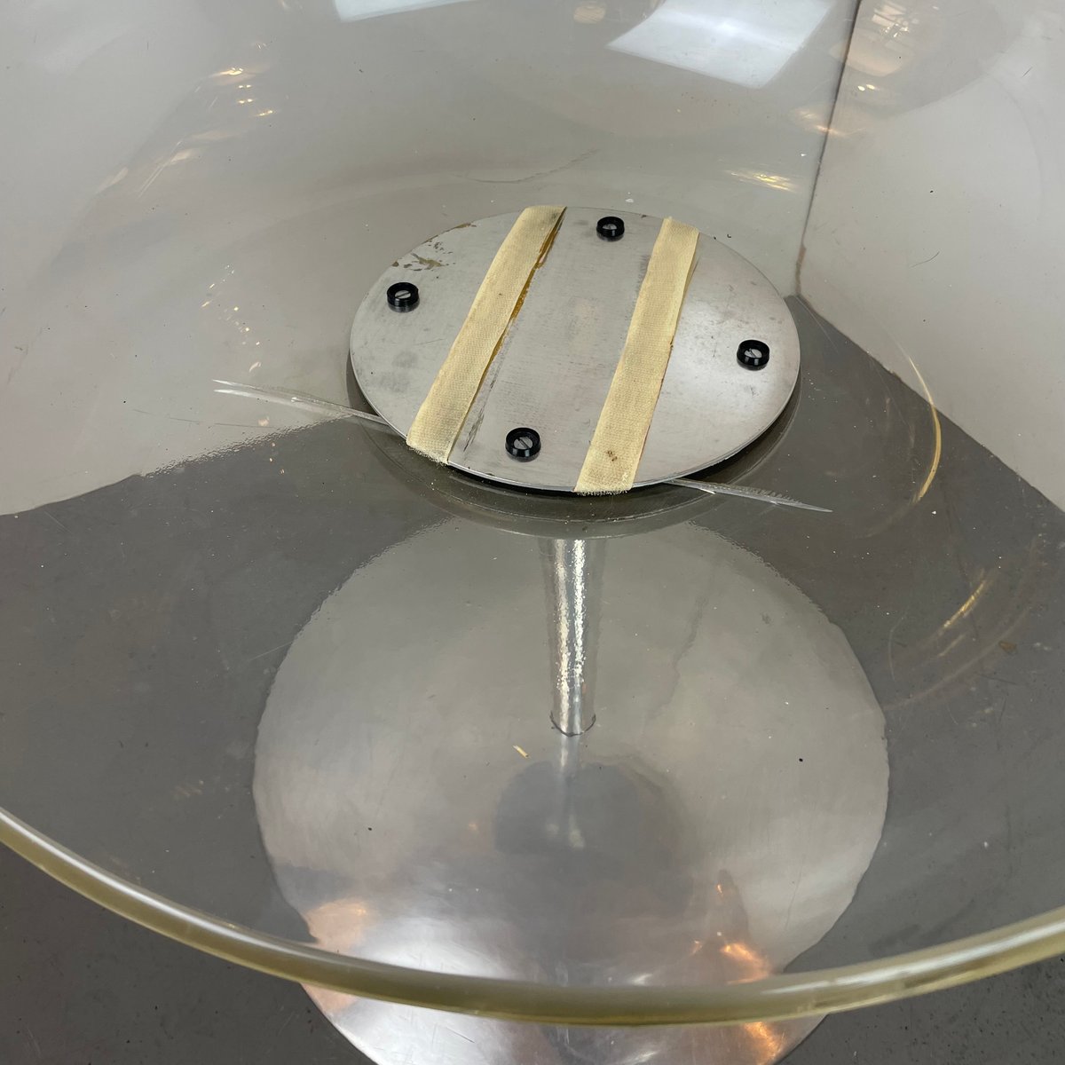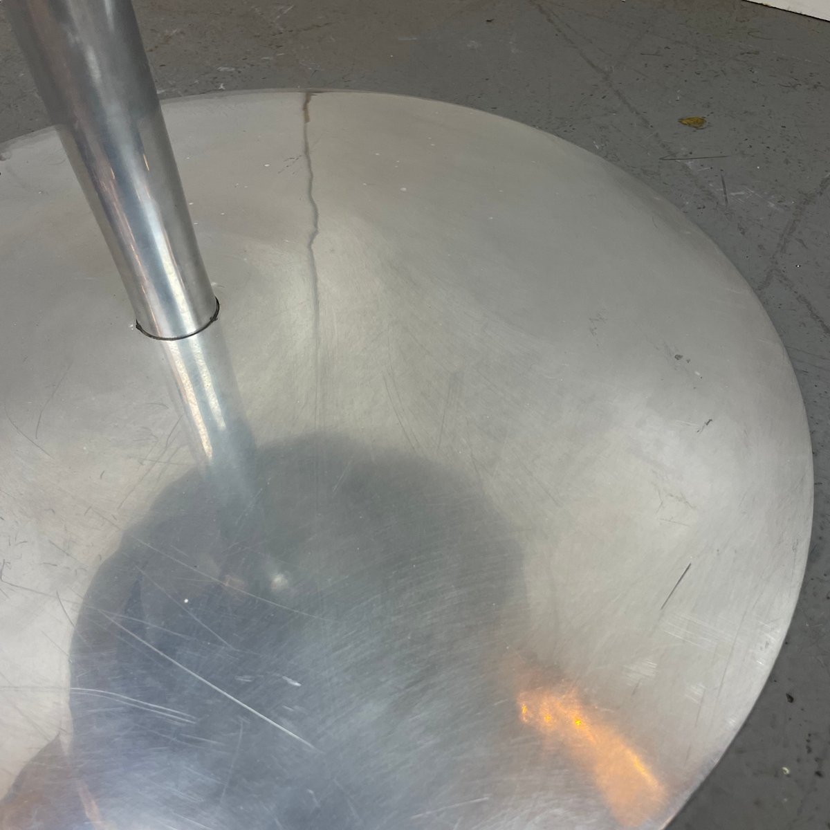 Entworfen von: Estelle & Erwin Laverne Herausgegeben von: Formes Nouvelles Hergestellt in: Paris, Frankreich Produktionszeitraum: 1950er Jahre Materialien: Metall, Acrylglas, Leder Farbe: Silber, klar Maße: H 91 x T 61 x B 58 cm