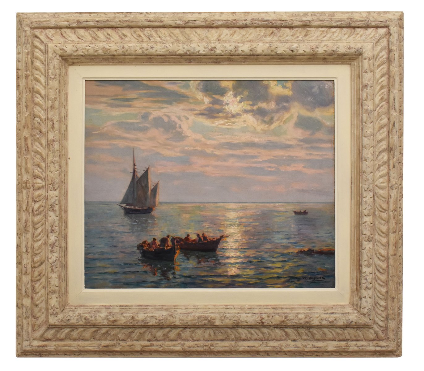 The seascape is signed lower right Ch. Signoret, a French painter known for his nudes, landscapes, and marine scenes.