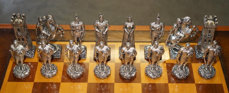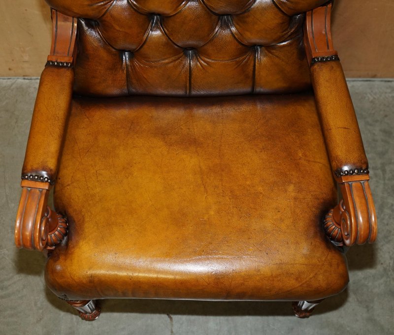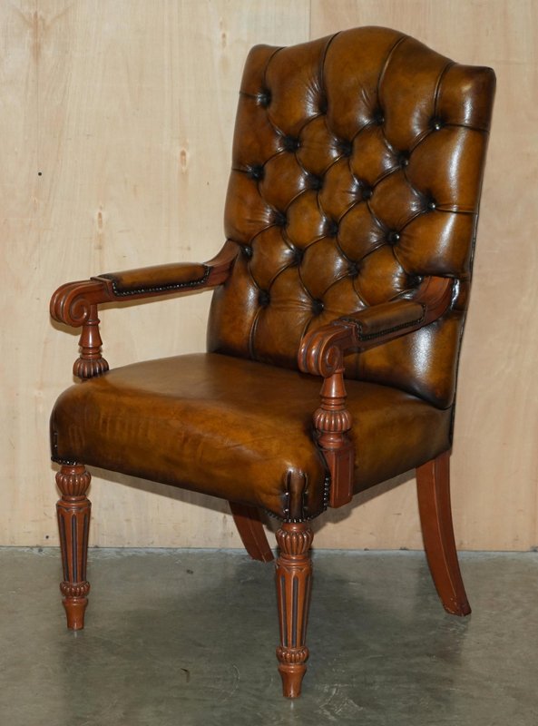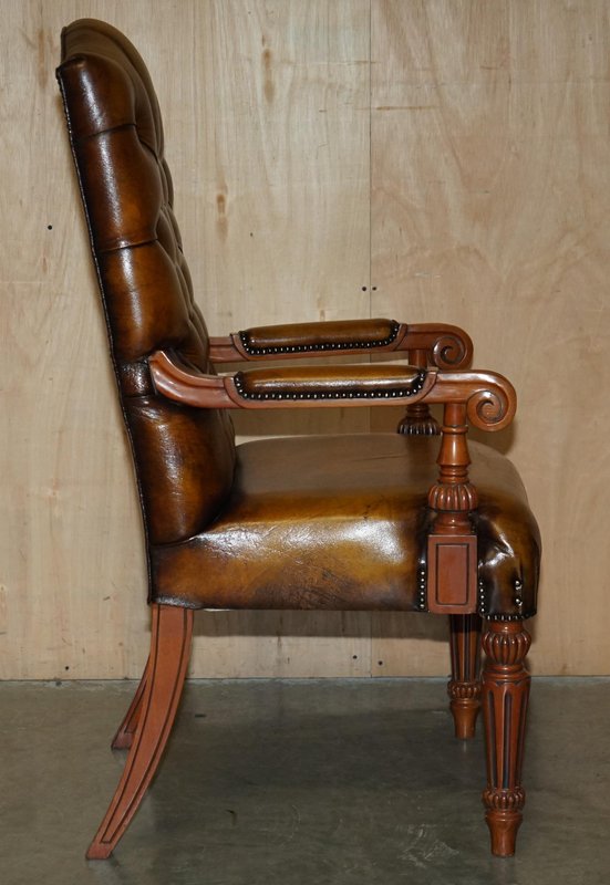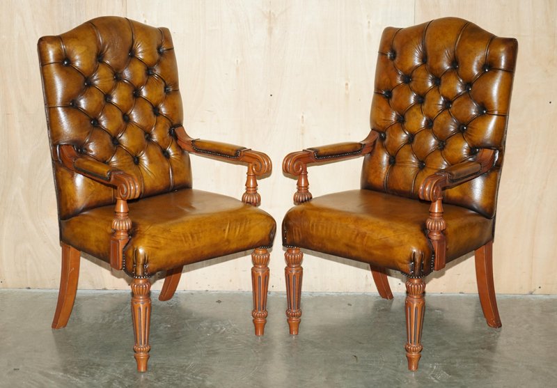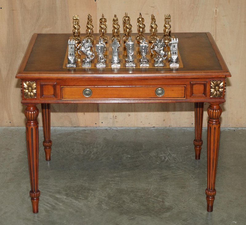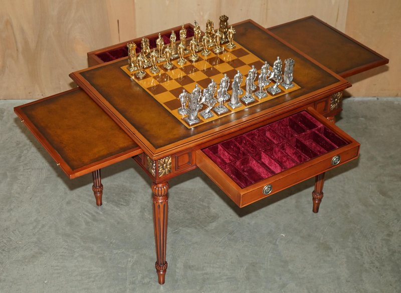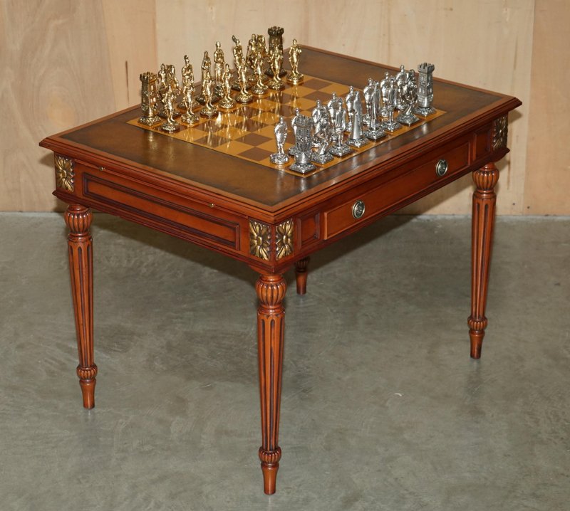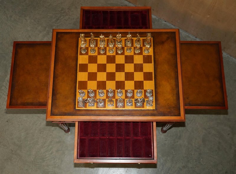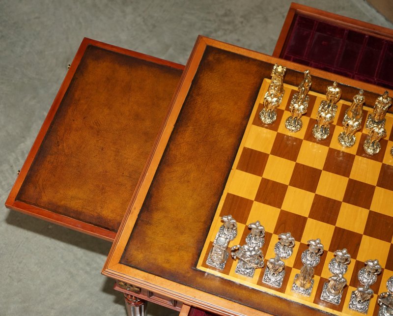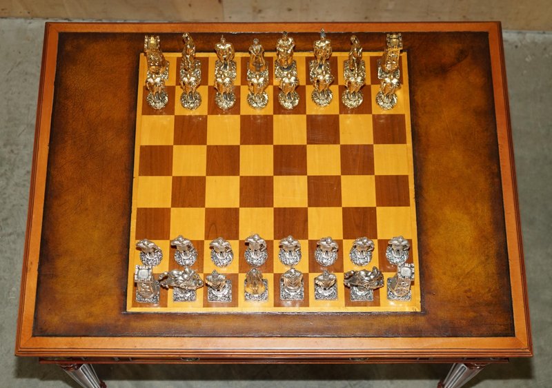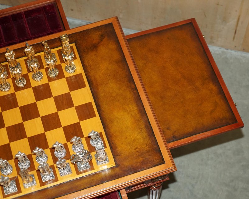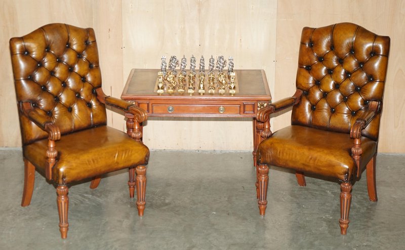 Chessboard Tisch und Chesterfield Sessel aus Leder, 3er Set