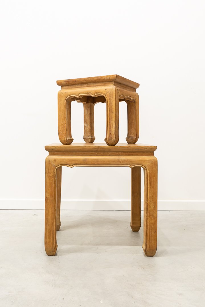Chinesische Vintage Ulmenholz Satztische, 2er Set