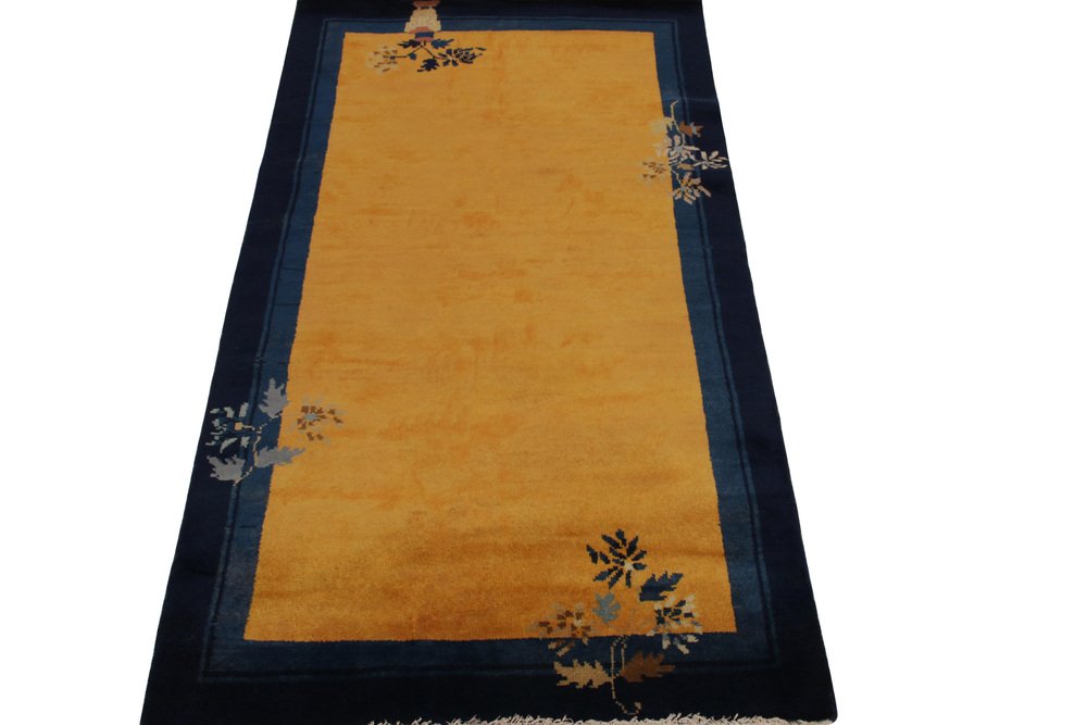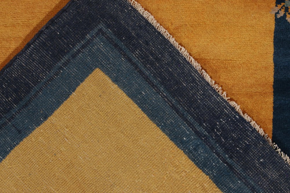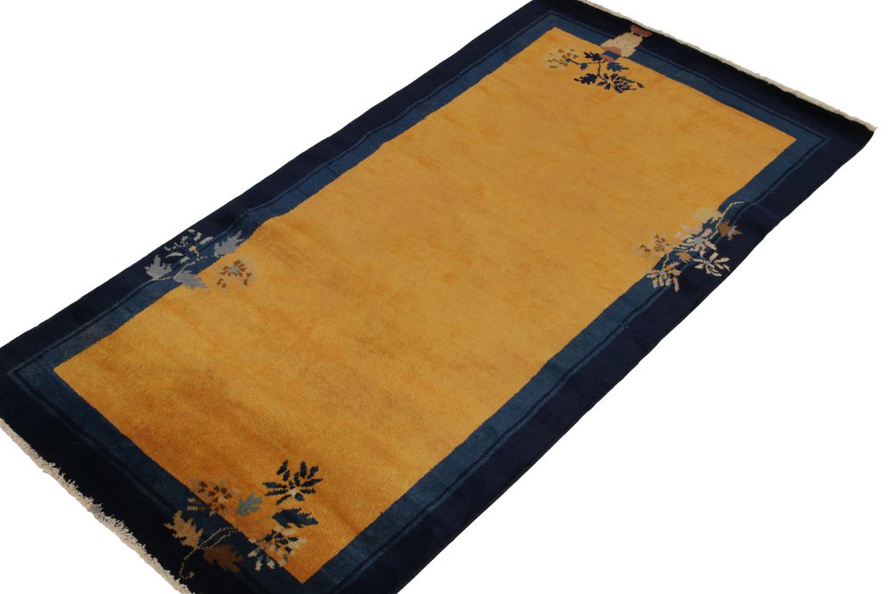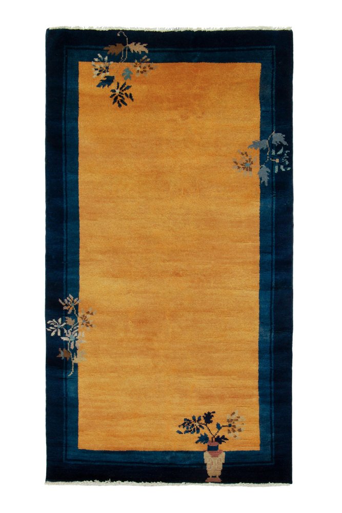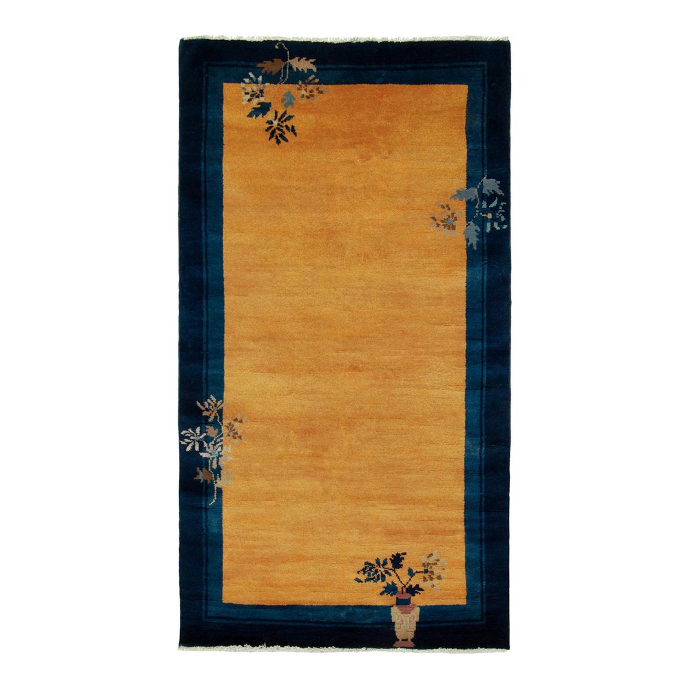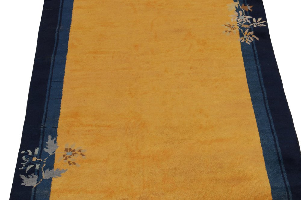 Chinesischer Vintage Art Deco Teppich in Gold mit Beige-Braun Blumenmuster