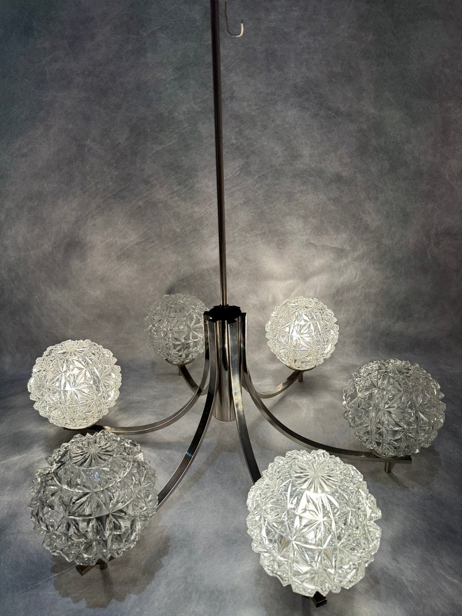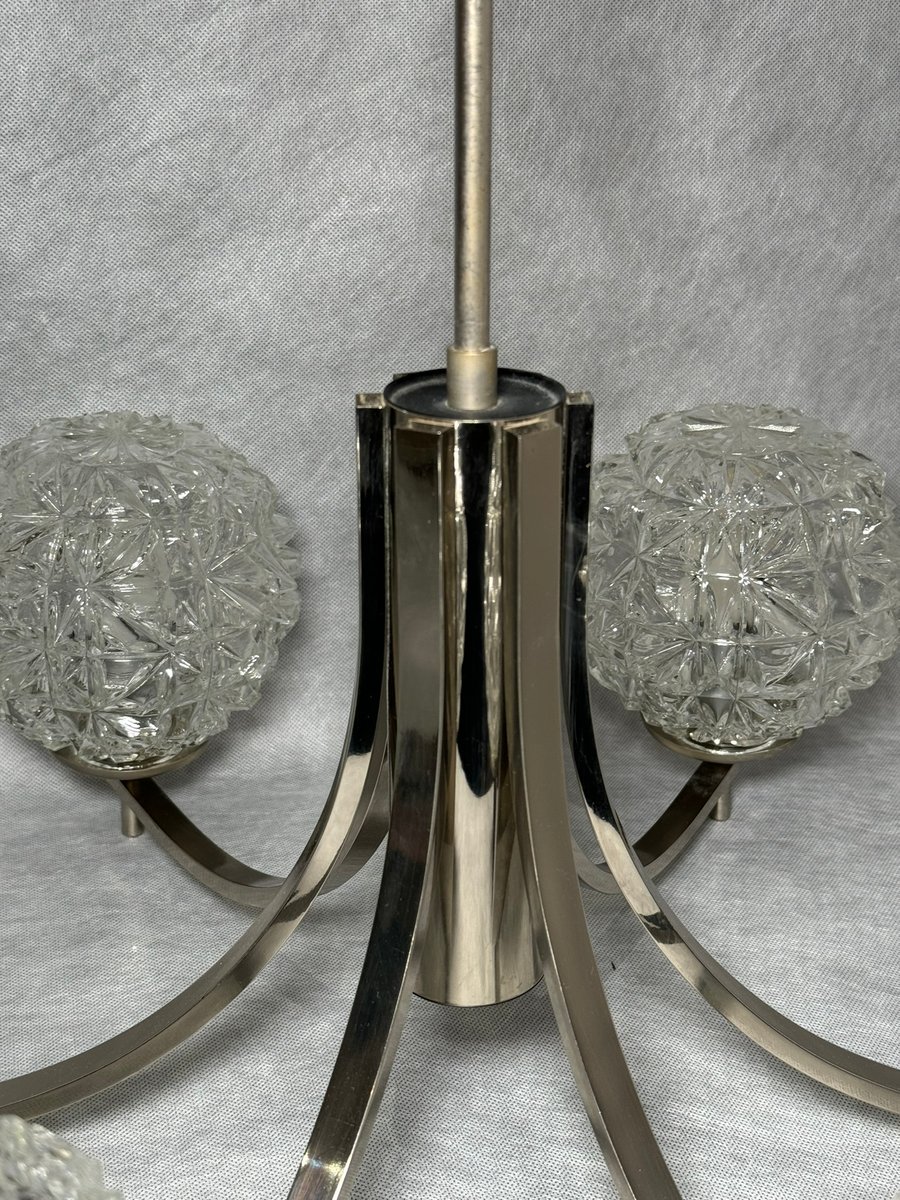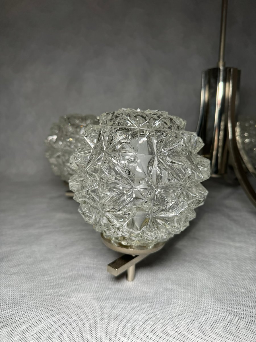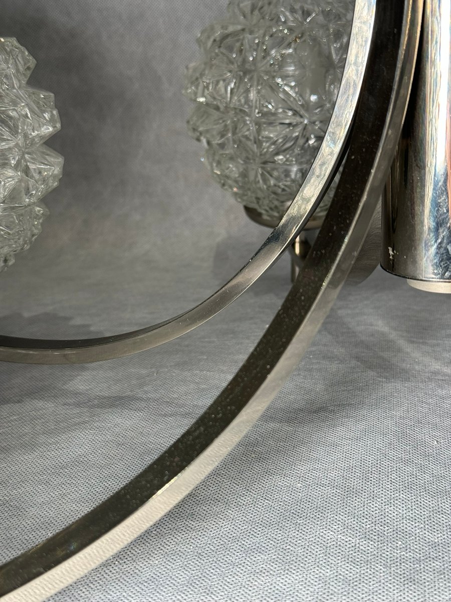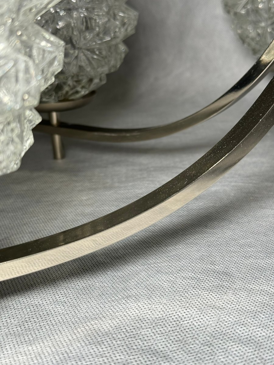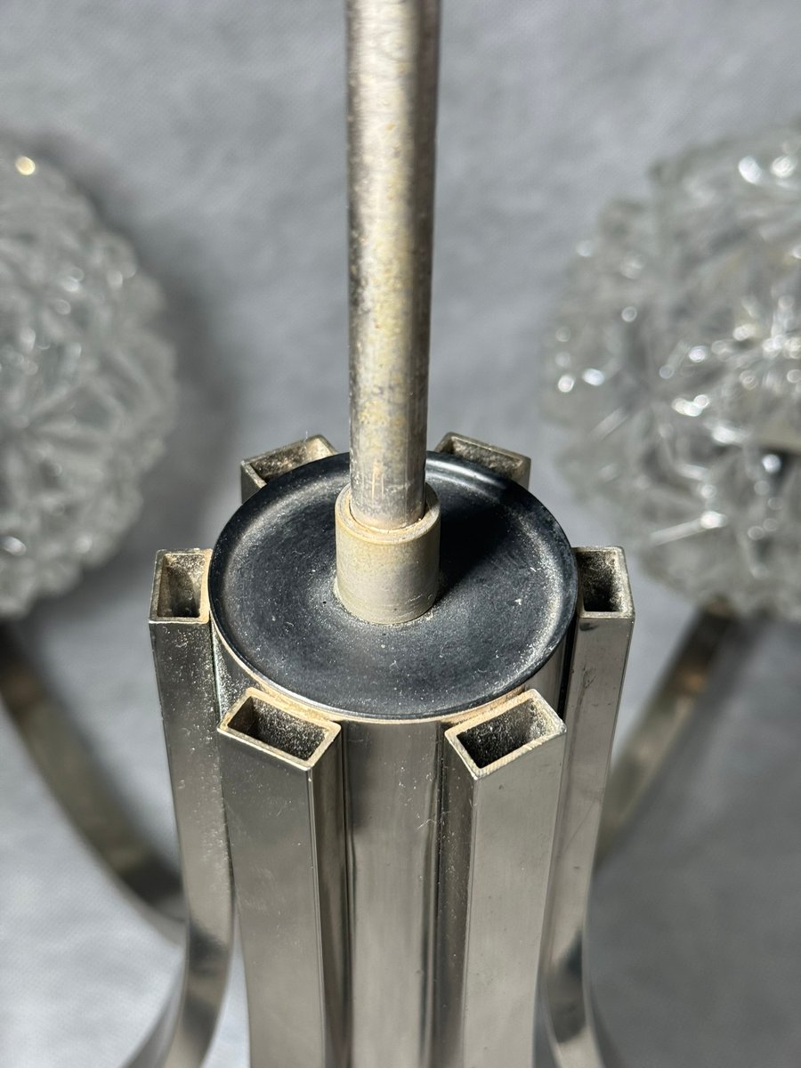 Chrom Kronleuchter mit Pressglasschirmen von Fischer Leuchten, Deutschland, 1970er
