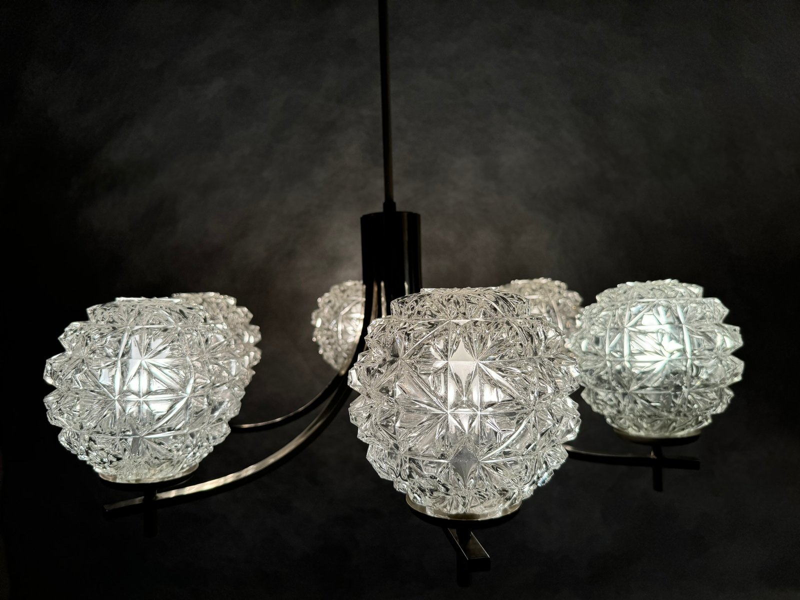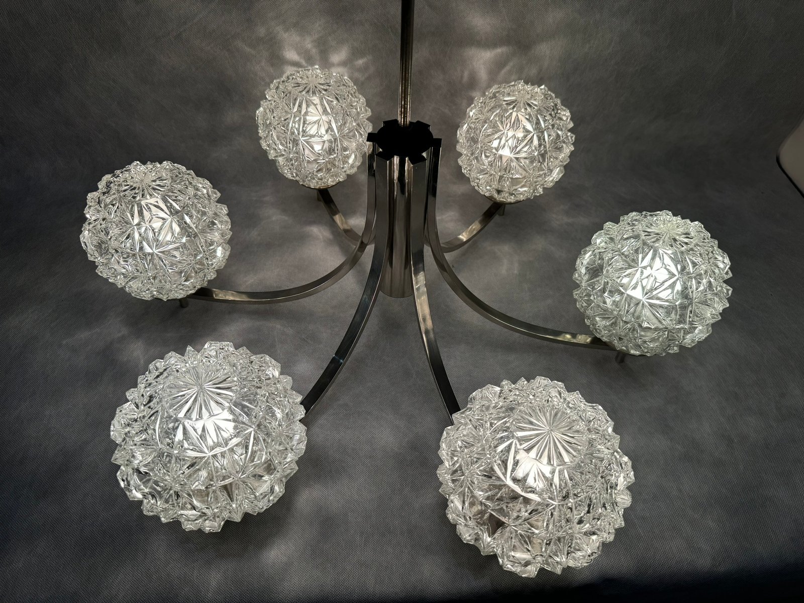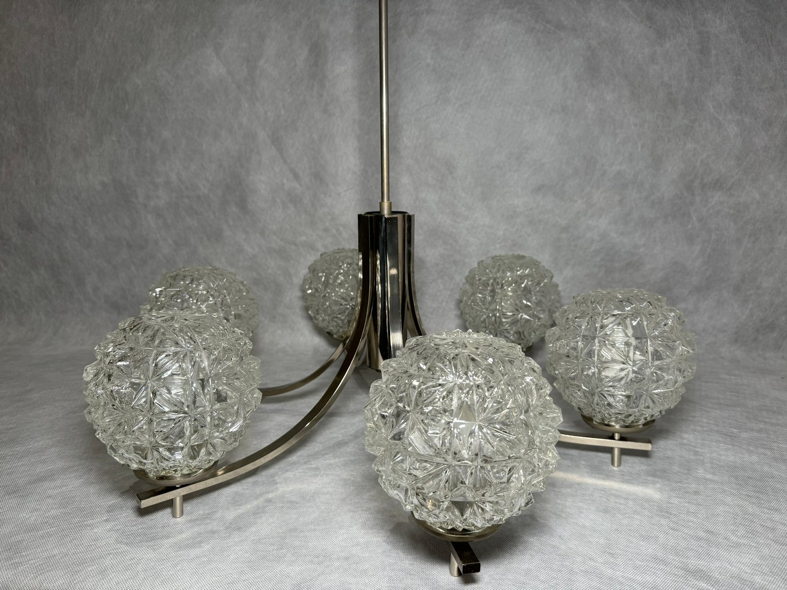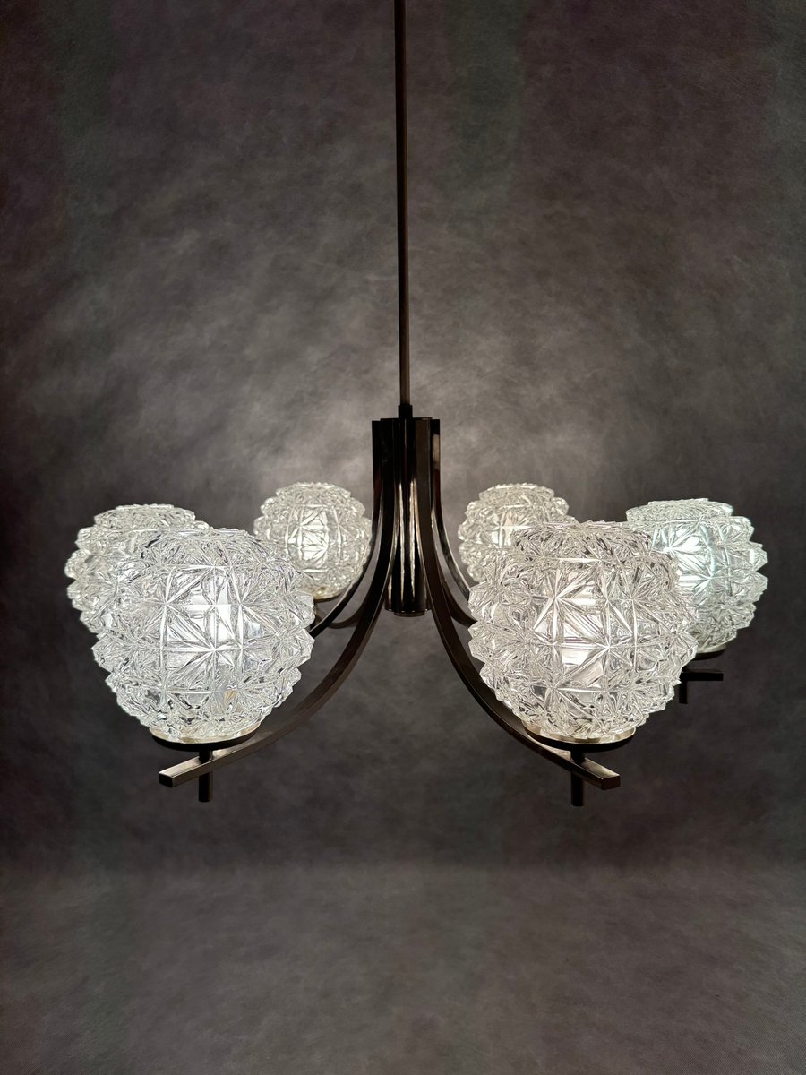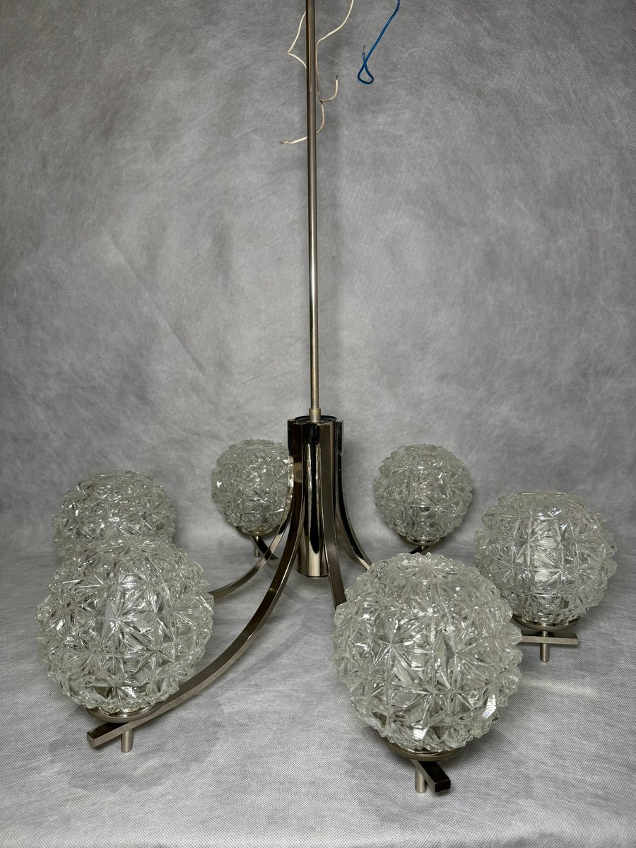 Chrom Kronleuchter mit Pressglasschirmen von Fischer Leuchten, Deutschland, 1970er