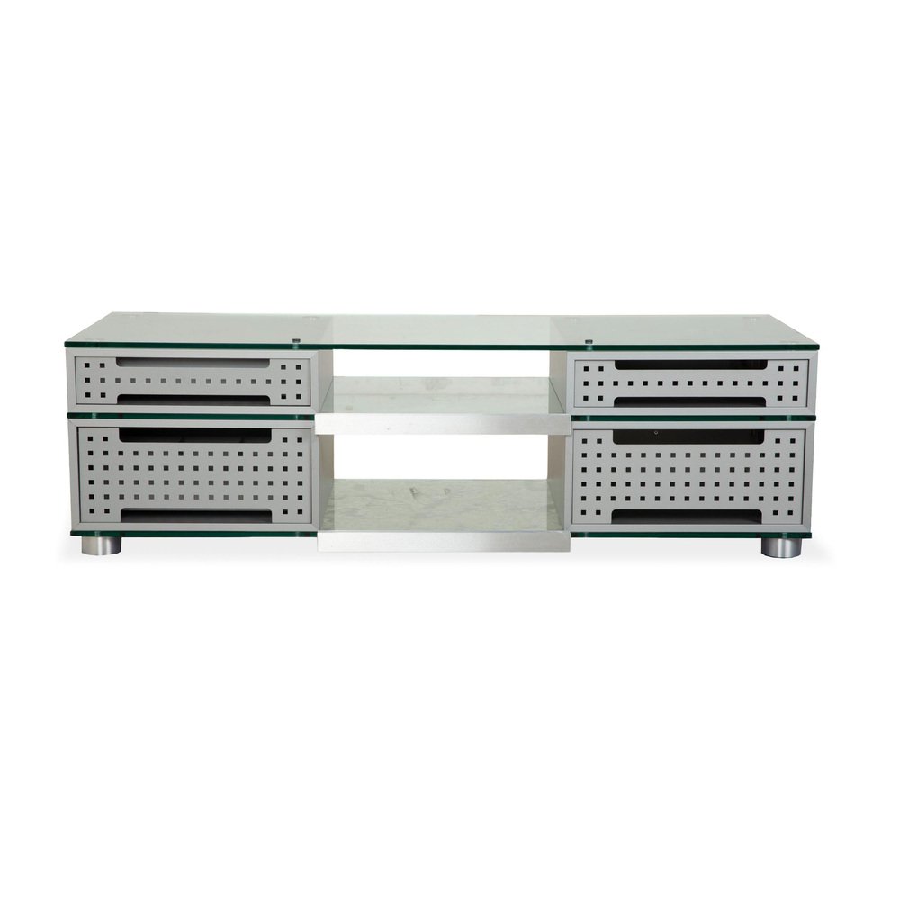 Das elegante Spectral CL 1552 Sideboard verkörpert die Designphilosophie der Marke Spectral, die Funktionalität und reduzierte Ästhetik vereint. Es ist ein Paradebeispiel für moderne Eleganz. Die klare Linienführung und die hochwertige Materialwahl unterstreichen den zeitlosen Charakter dieses Sideboards. Gefertigt aus edlem schwarzem Glas mit durchsichtigem Mittelfach, passt sich das Sideboard perfekt an zeitgenössische Wohnkonzepte an. Links bieten zwei Klappen viel Stauraum für eine aufgeräumte Multimedia-Lösung, die Kabel elegant verbirgt. Rechts sorgen zwei Schubladen für weiteren Stauraum. Das Spectral CL 1552 Sideboard überzeugt nicht nur durch sein ansprechendes Äußeres, sondern auch durch seine durchdachte Konstruktion, die Langlebigkeit und Stabilität gewährleistet.