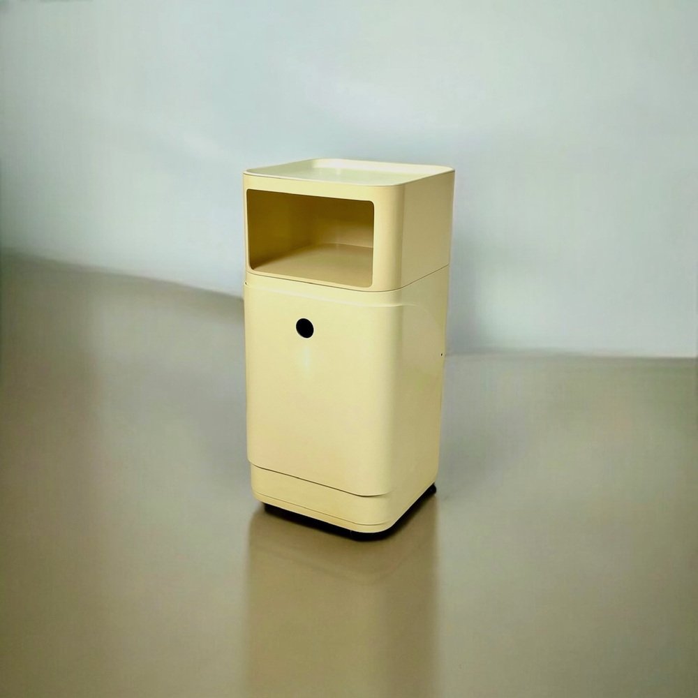 This collection is in excellent vintage condition and includes smooth-rolling wheels for ease of movement. Collectors and enthusiasts of Space Age and mid-century modern furniture will appreciate these pieces for their historical significance, refined design, and quality. The Componibili offers a distinctive blend of retro charm and practical function, embodying the forward-thinking approach of its era.