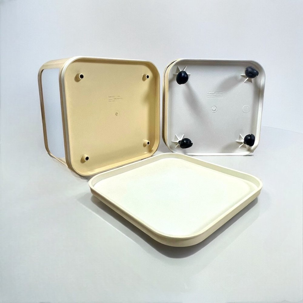 The Vintage Kartell Componibili by Anna Castelli Ferrieri is a rare piece of Space Age Furniture design, created in the 1960s during a period celebrated for its innovative use of materials and form. This particular set features the highly sought-after Model 4984 laundry bin alongside the structured Model 4970 with a squared base, crafted from glossy plastic that captures the mid-century modern aesthetic.