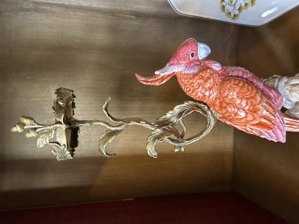 Coral Parrot Kerzenständer aus Porzellan und gerader Bronze von Gand & C