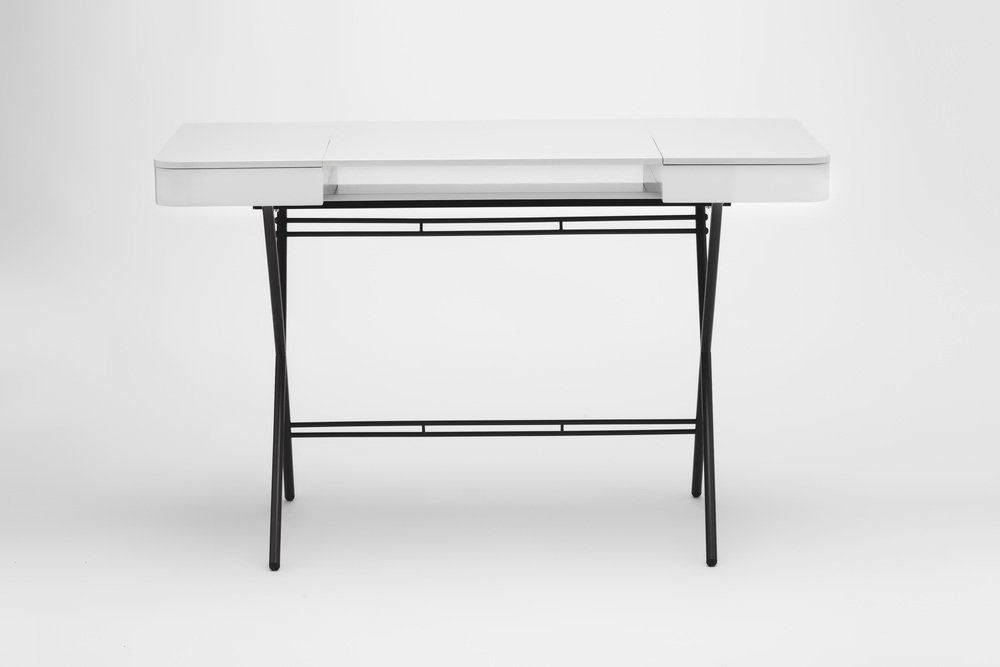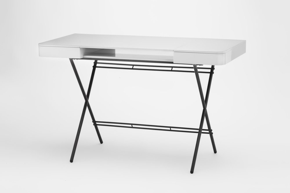 Cosimo Schreibtisch mit grau glänzend lackierter Platte und weiß lackiertem Gestell von Marco Zanuso Jr. für Adentro