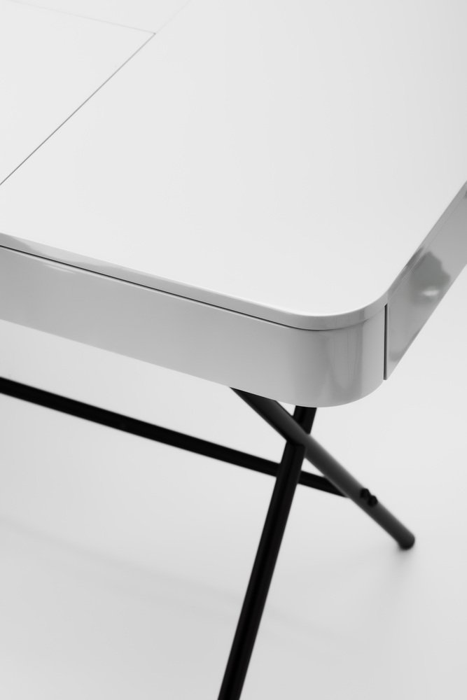 Cosimo Schreibtisch mit weißer matt lackierter Tischplatte & Gestell aus Chrom von Marco Zanuso Jr. für Adentro, 2017
