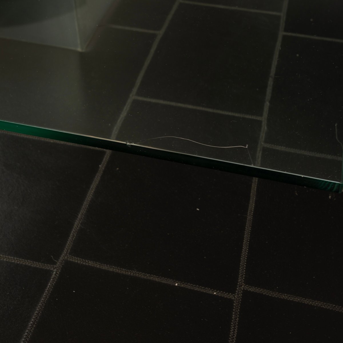 Ein charakteristisches und besonders hochwertiges Element ist die Zwischenebene, die mit feinem Pecari-Leder bezogen ist, einem seltenen und extrem hochwertigen Material, das historisch mit der handwerklichen Exzellenz von Poltrona Frau verbunden ist. Das Leder, das sorgfältig verarbeitet und zu regelmäßigen quadratischen Feldern vernäht wurde, fügt eine taktile und sensorische Dimension hinzu, die sowohl einen Kontrast zur Strenge des Stahls als auch zur Leichtigkeit des Glases bildet als auch diese ausgleicht. Das Nahtmuster gliedert die Oberfläche mit einem gemessenen Rhythmus und erinnert an eine fast architektonische Grammatik, die ganz im Einklang mit Agnolis Designsprache steht.