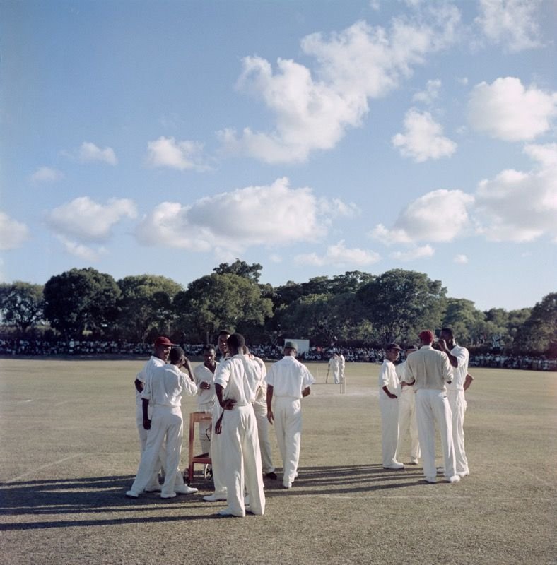 Cricket in Antigua Übergroßer C Druck in Schwarz