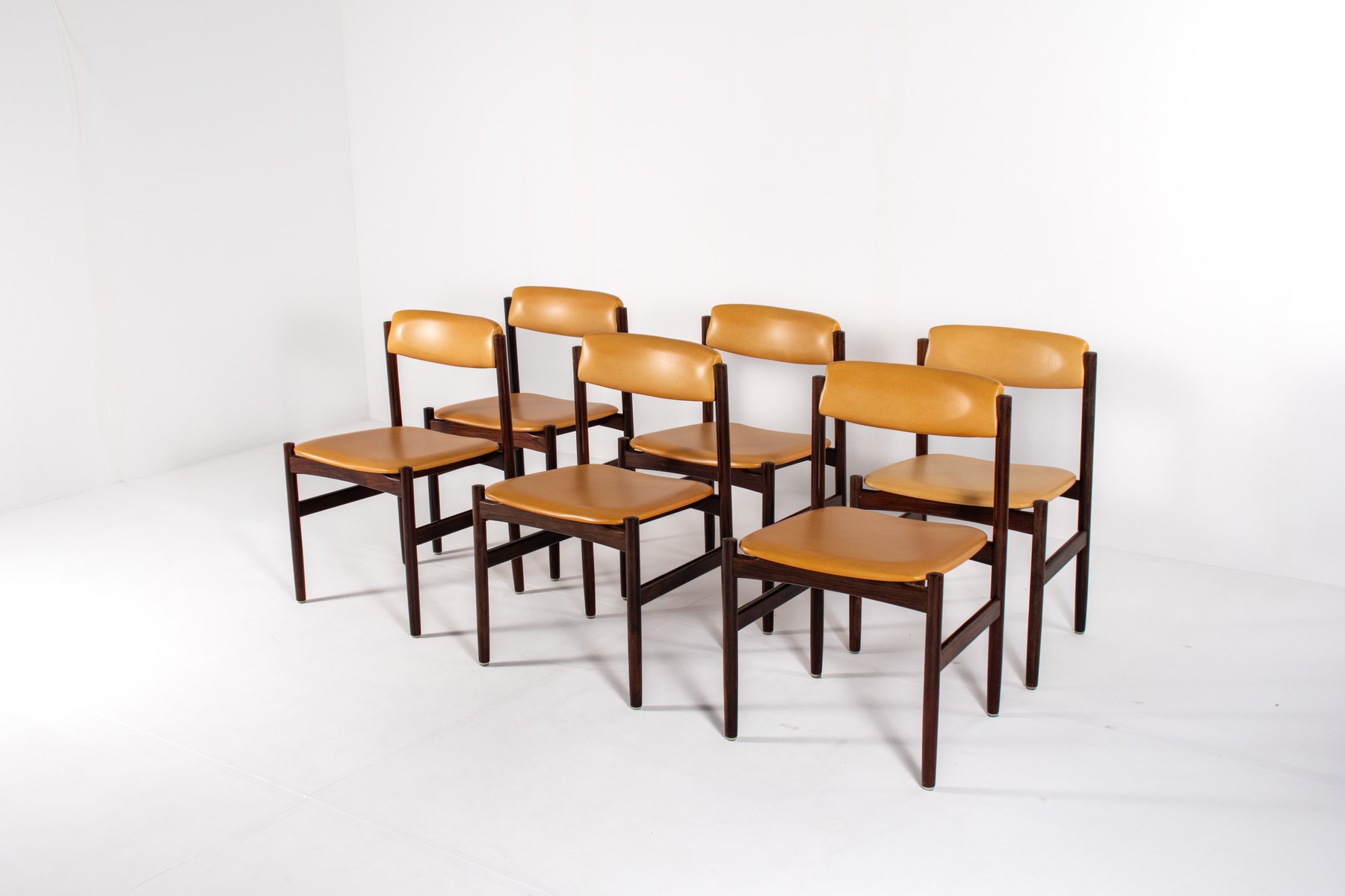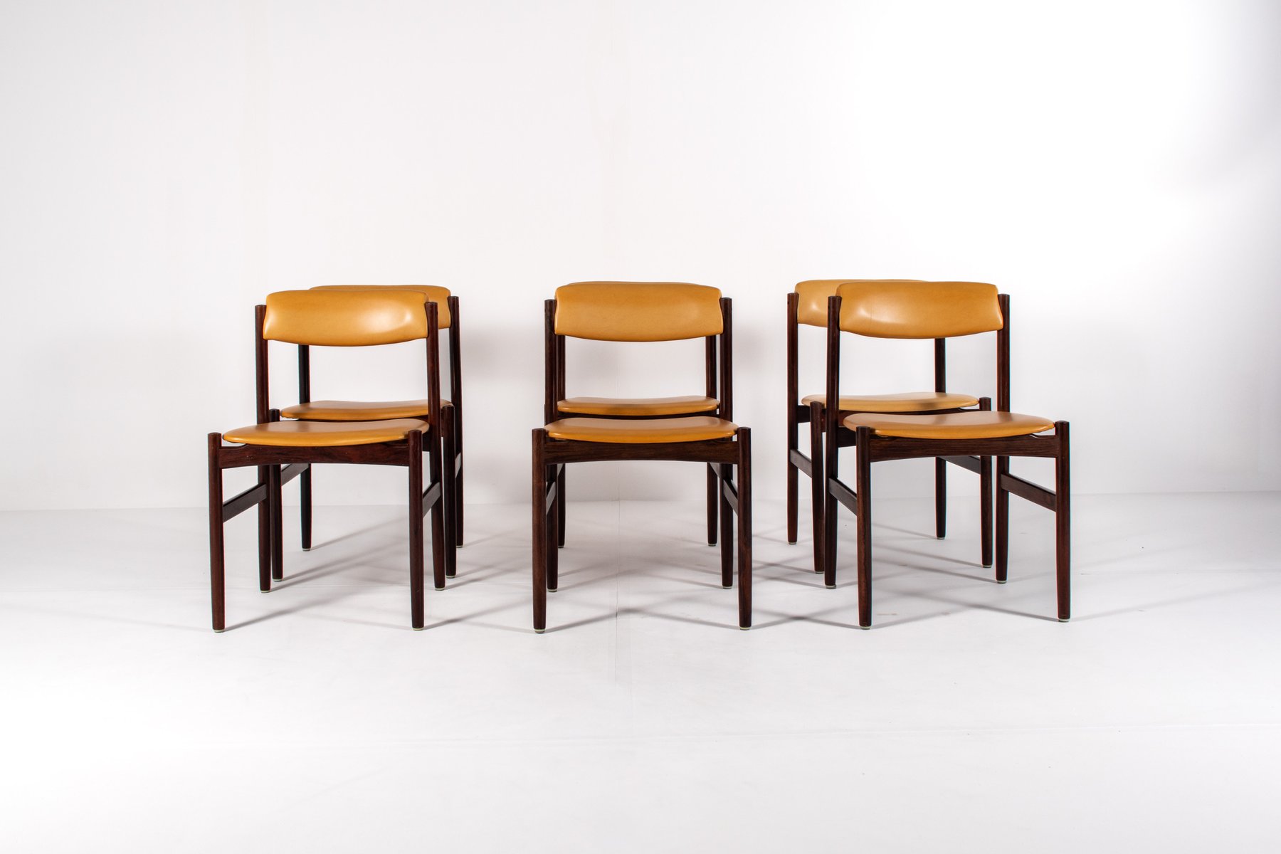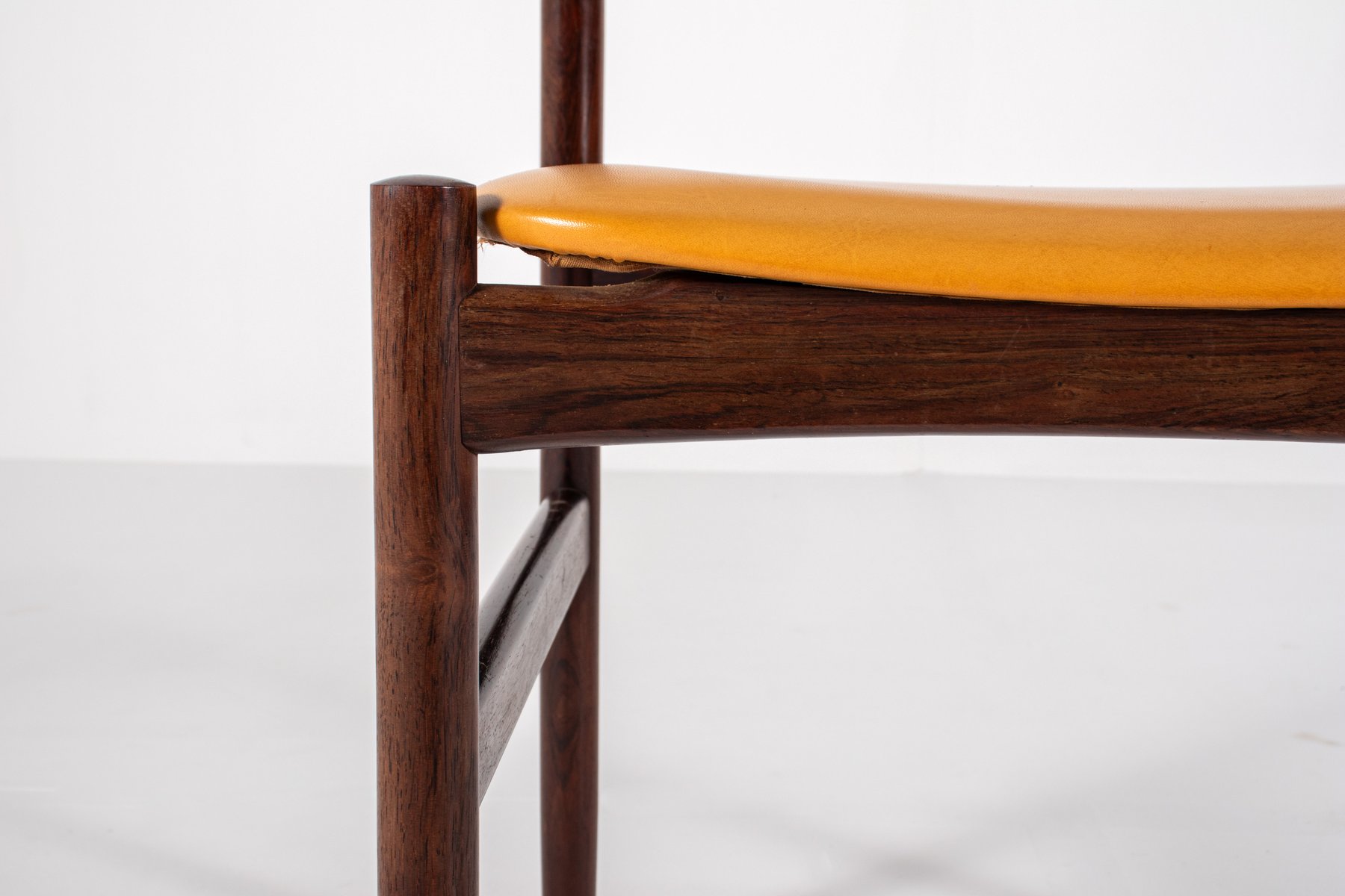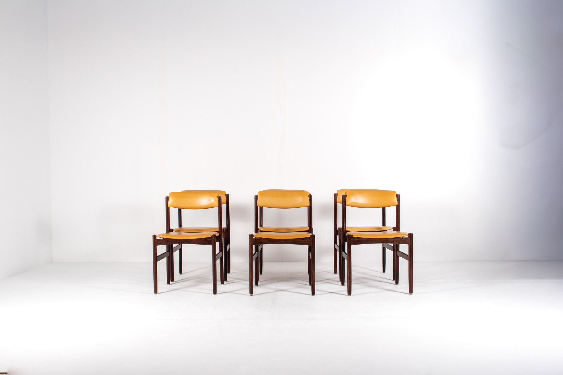 Dänische Mid-Century Esszimmerstühle aus Palisander mit Sitzen aus gelbem Skai, 1960er, 6 . Set