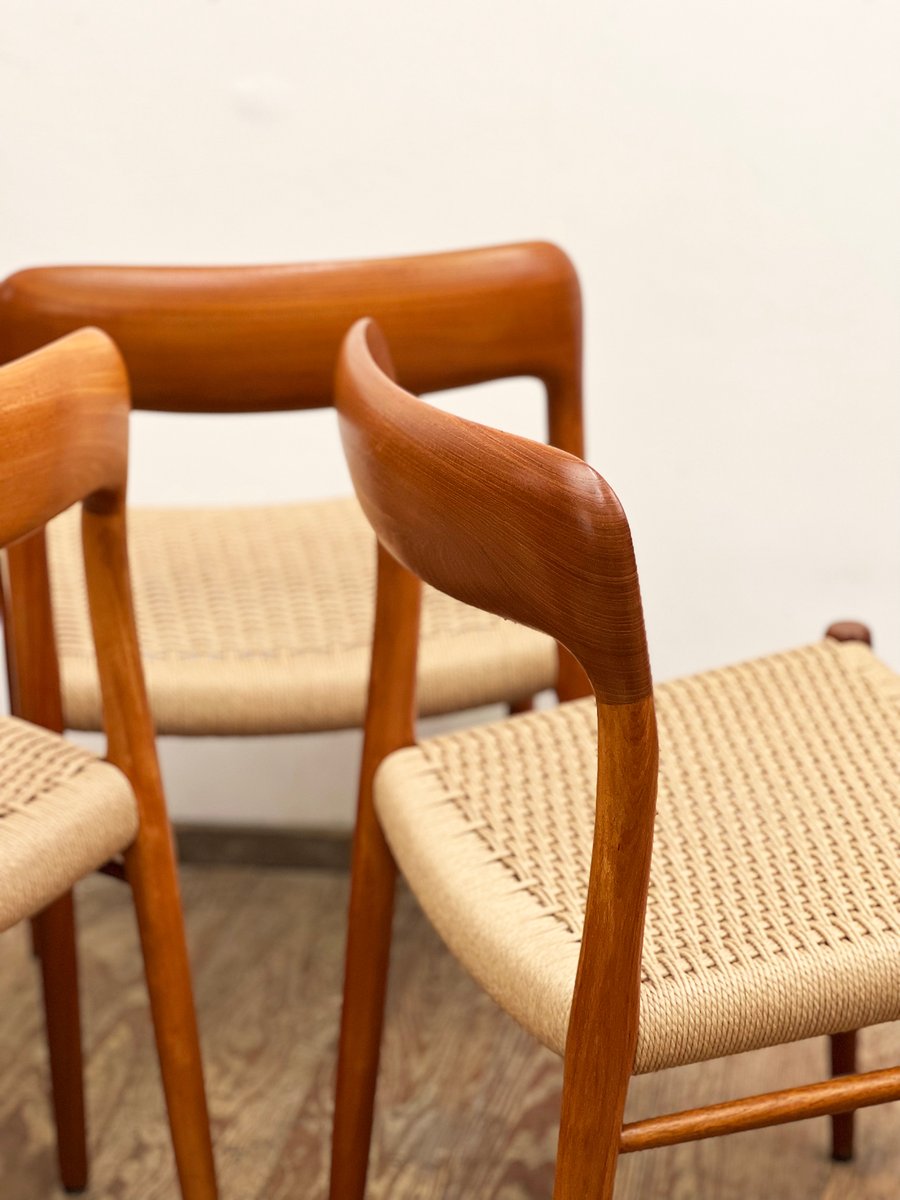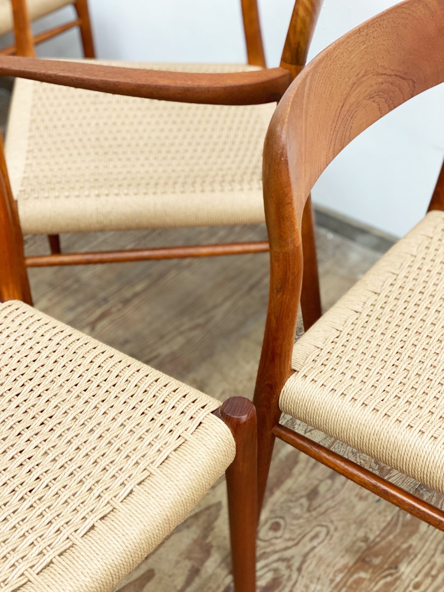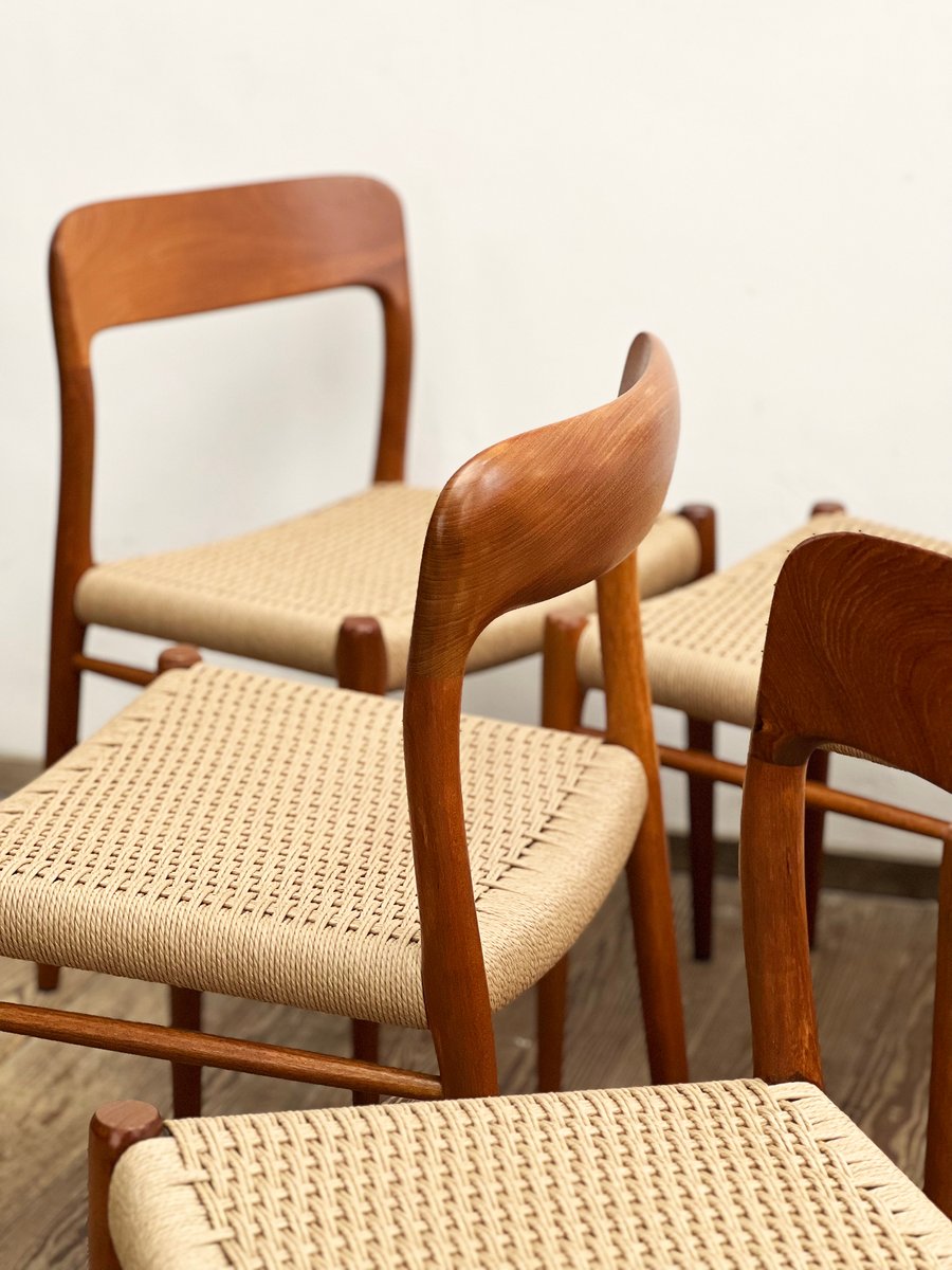 Dänische Mid-Century Modell 56 & 75 D Stühle aus Teak von Niels O. Møller für JL Møllers Møbelfabrik, 1950, 8er Set