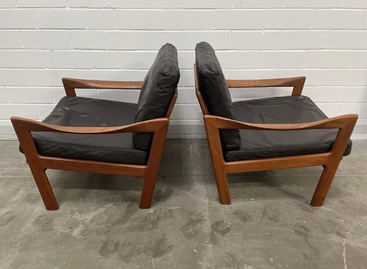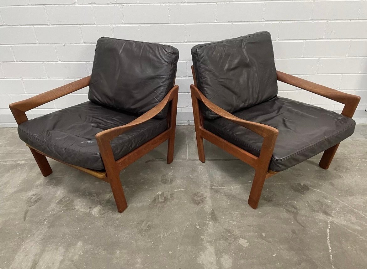 Dänische Teak Leder Armlehnstühle von Illum Wikkelsø für Niels Eilersen, 1960er