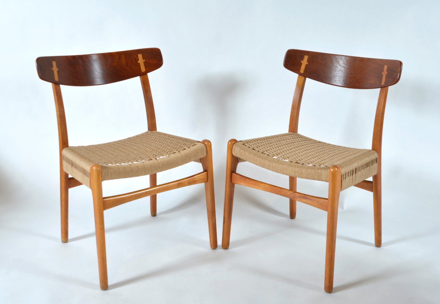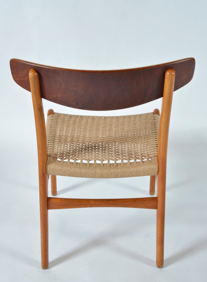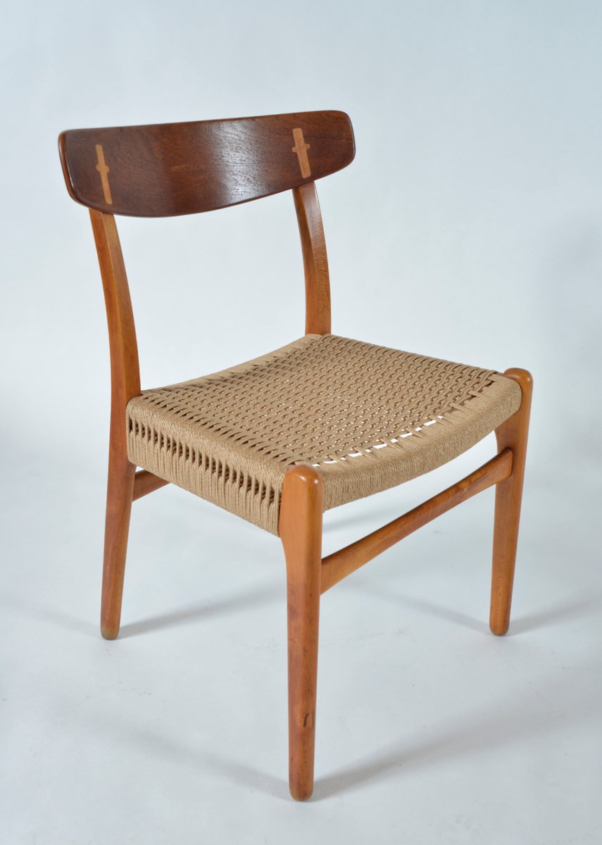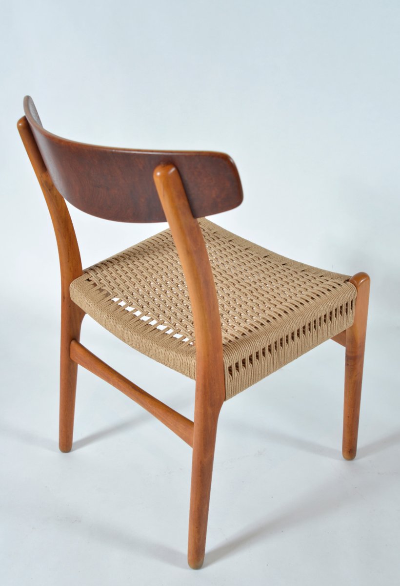 Innerhalb der ersten drei Wochen bei dem Unternehmen entwarf Wegner den CH22 Sessel, den CH23 Esszimmerstuhl, den CH24 Wishbone Stuhl und den CH25 Sessel für Carl Hansen & Søn. Diese erste Kollektion, die 1950 auf den Markt kam, machte sowohl Wegner als auch Carl Hansen & Søn international berühmt. Die mutigen skulpturalen Designs sowohl des Wishbone Stuhles als auch des CH25 Sessels brachen mit der Tradition und waren radikal für die Zeit. Wegners Verwendung von Papierkordel-Gewebe—ein während des Krieges verwendetes Ersatzmaterial— für den Sitz seines CH25 war etwas vollkommen Neues. Holgers Entscheidung, in die Arbeiten eines nahezu unbekannten Designers zu investieren, war ein großes Risiko, jedoch eines, das sich für den Hersteller auszahlen sollte.