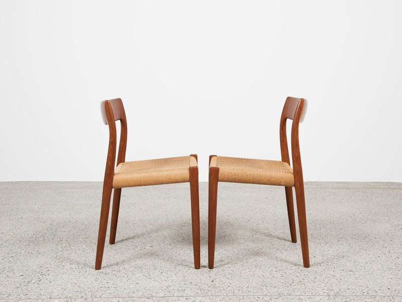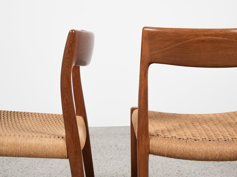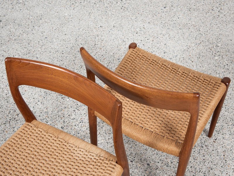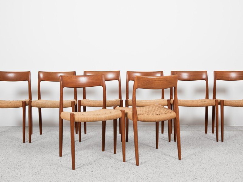 Dänische Vintage Modell 77 Stühle aus Teak & Papierkordel von Niels Otto Møller, 8 . Set