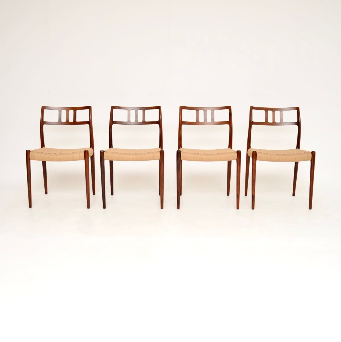 An incredibly stylish and iconic set of four Danish vintage model 79 chairs by Niels Moller. They were originally designed in 1951, this set dates from around the 1960’s.