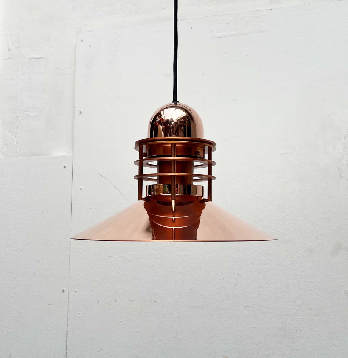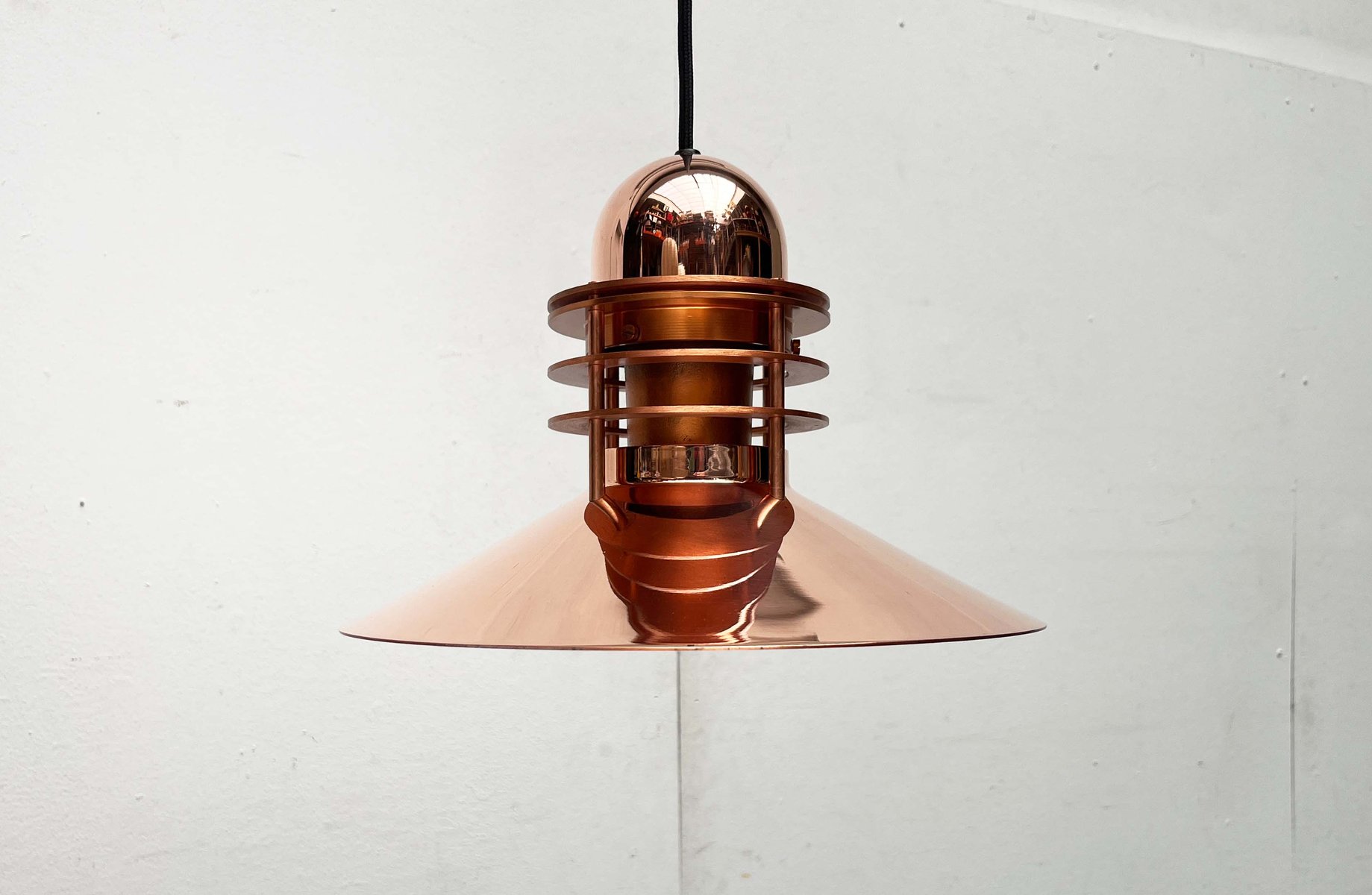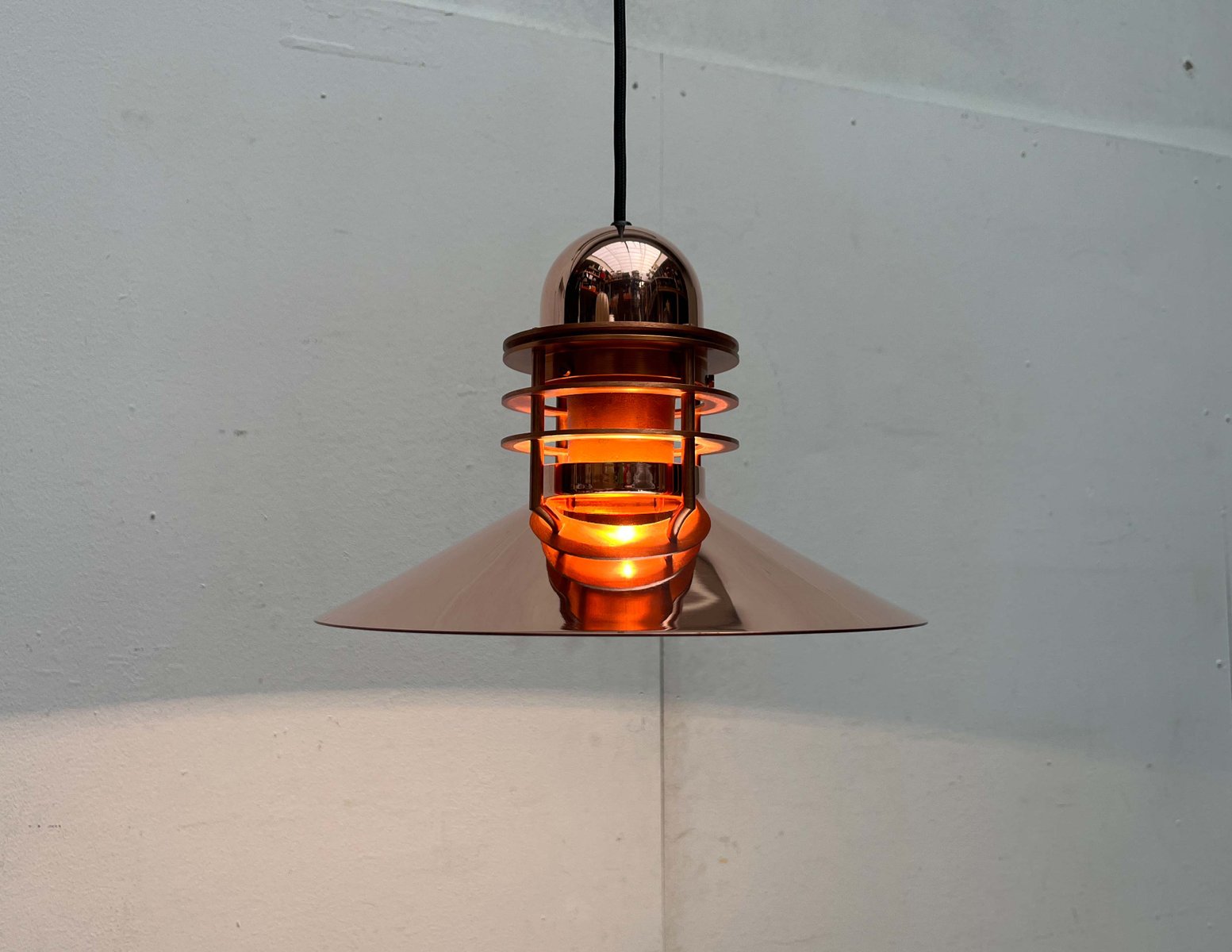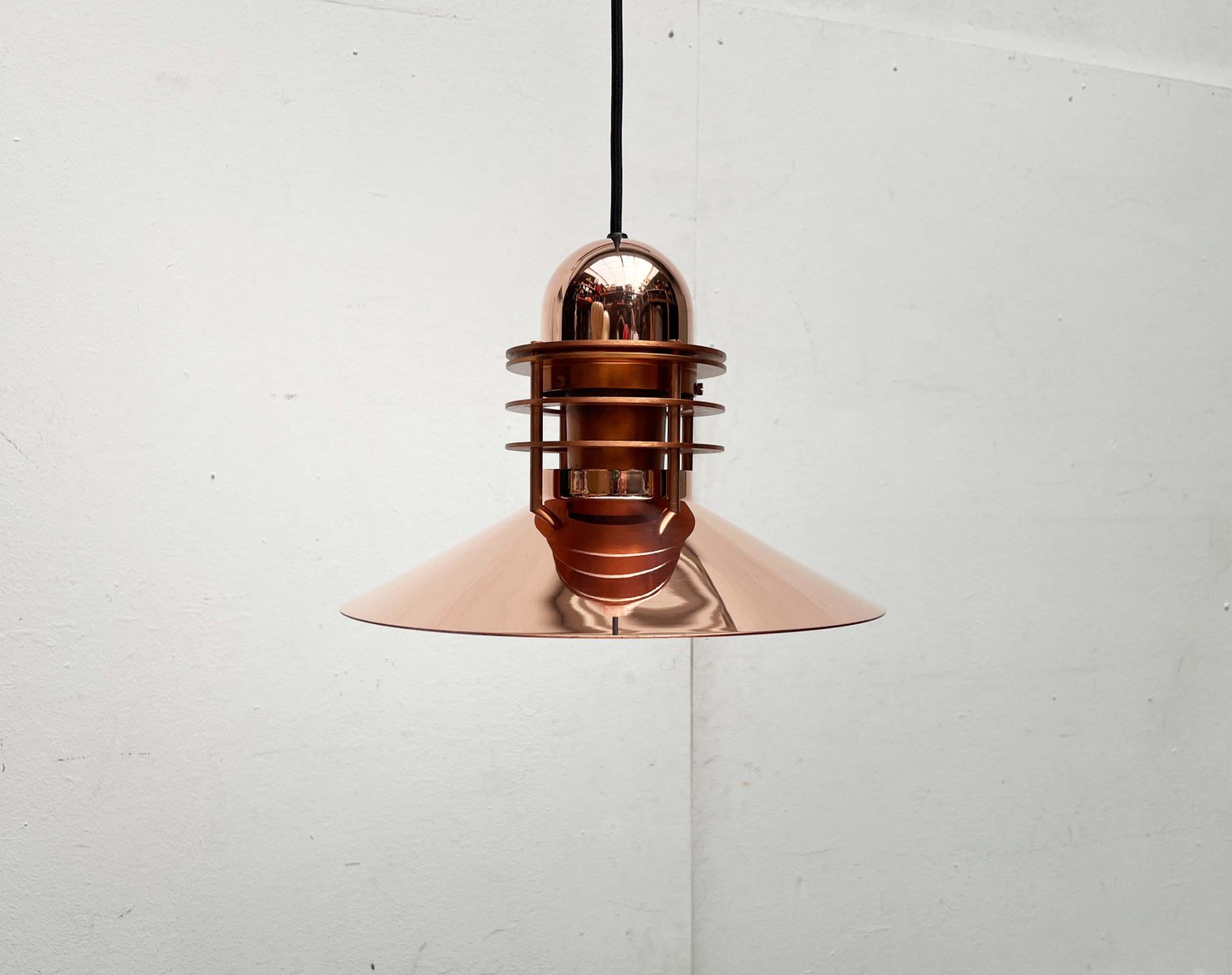 Das Unternehmen Louis Poulsen, heute einer der bekanntesten Hersteller für Beleuchtung, begann seine Laufbahn im Jahr 1874 als die Copenhagen Direct Wine Import Company und orientierte sich 1896 zum Zulieferer für elektrische Bauteile und Werkzeug um. Um 1910 übernahm Louis Poulsen (1871 - 1934), der Neffe des aus Kopenhagen kommenden Gründer, das Unternehmen und tat sich kurz darauf mit dem Unternehmer und dem von Elektrizität begeisterten Sophus Kaastrup-Olsen (1884 - 1938) zusammen und die beiden eröffneten Louis Poulsen & Co. 1917 erwarb Kaastrup-Olsen auch Poulsens Anteile und wurde damit zum alleinigen Inhaber, genau zu der Zeit, in der er von der während und nach dem Ersten Weltkrieg immer weiter ansteigenden Nachfrage für elektrisch angetriebene Installationen profitieren konnte.