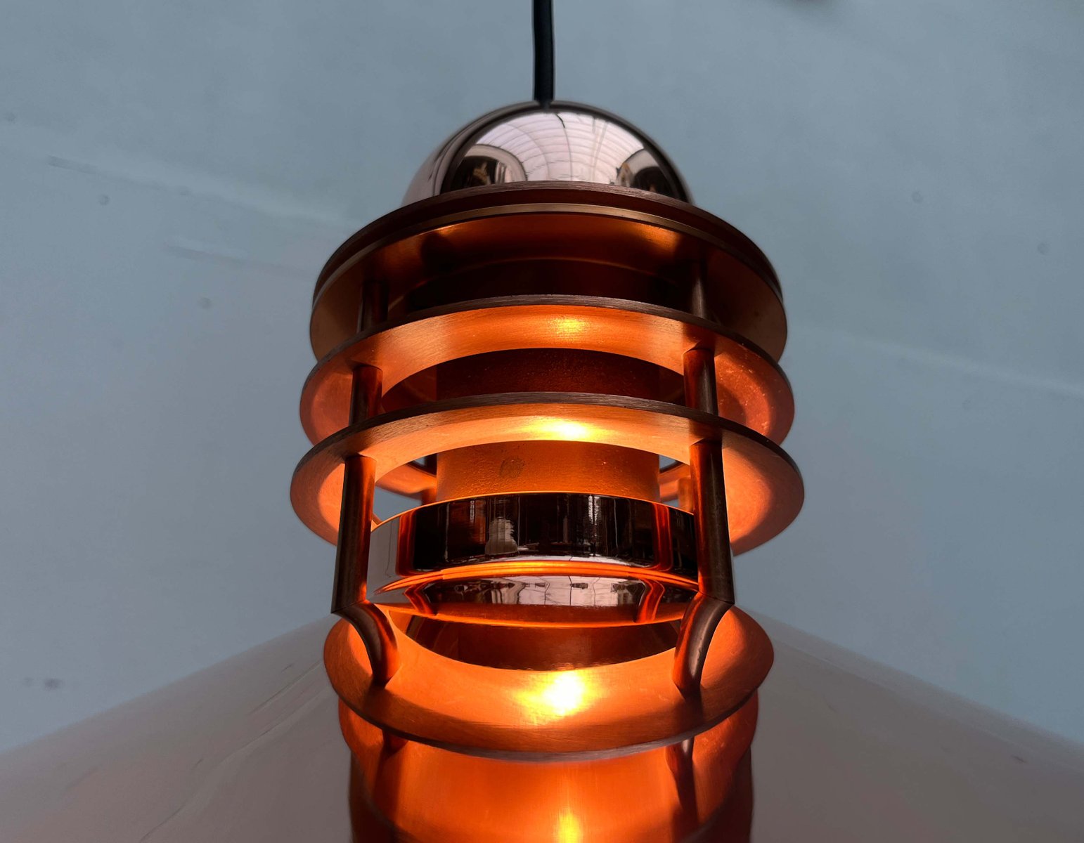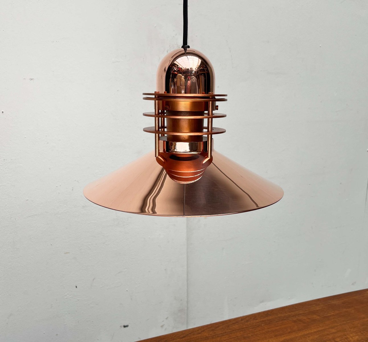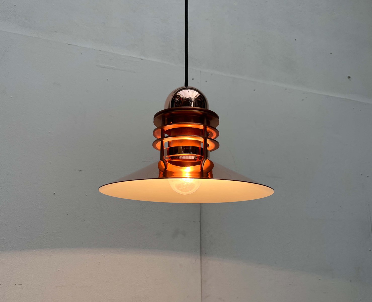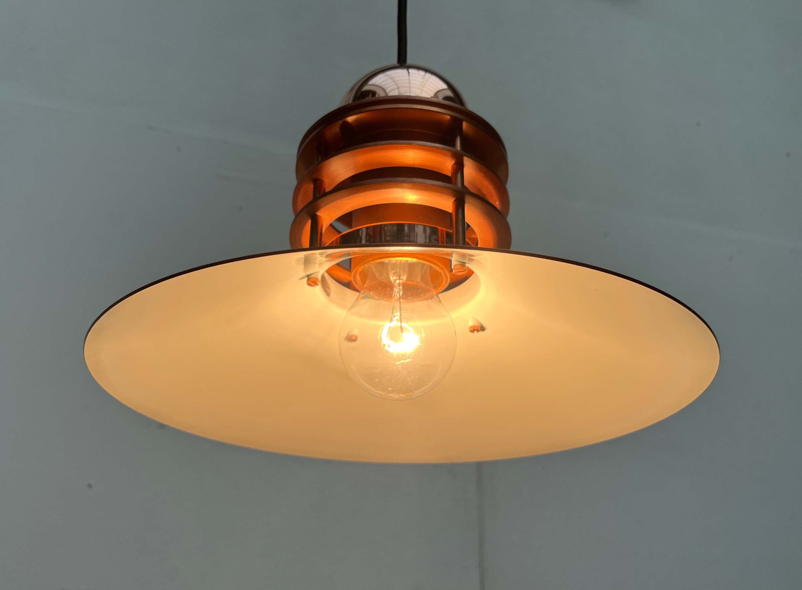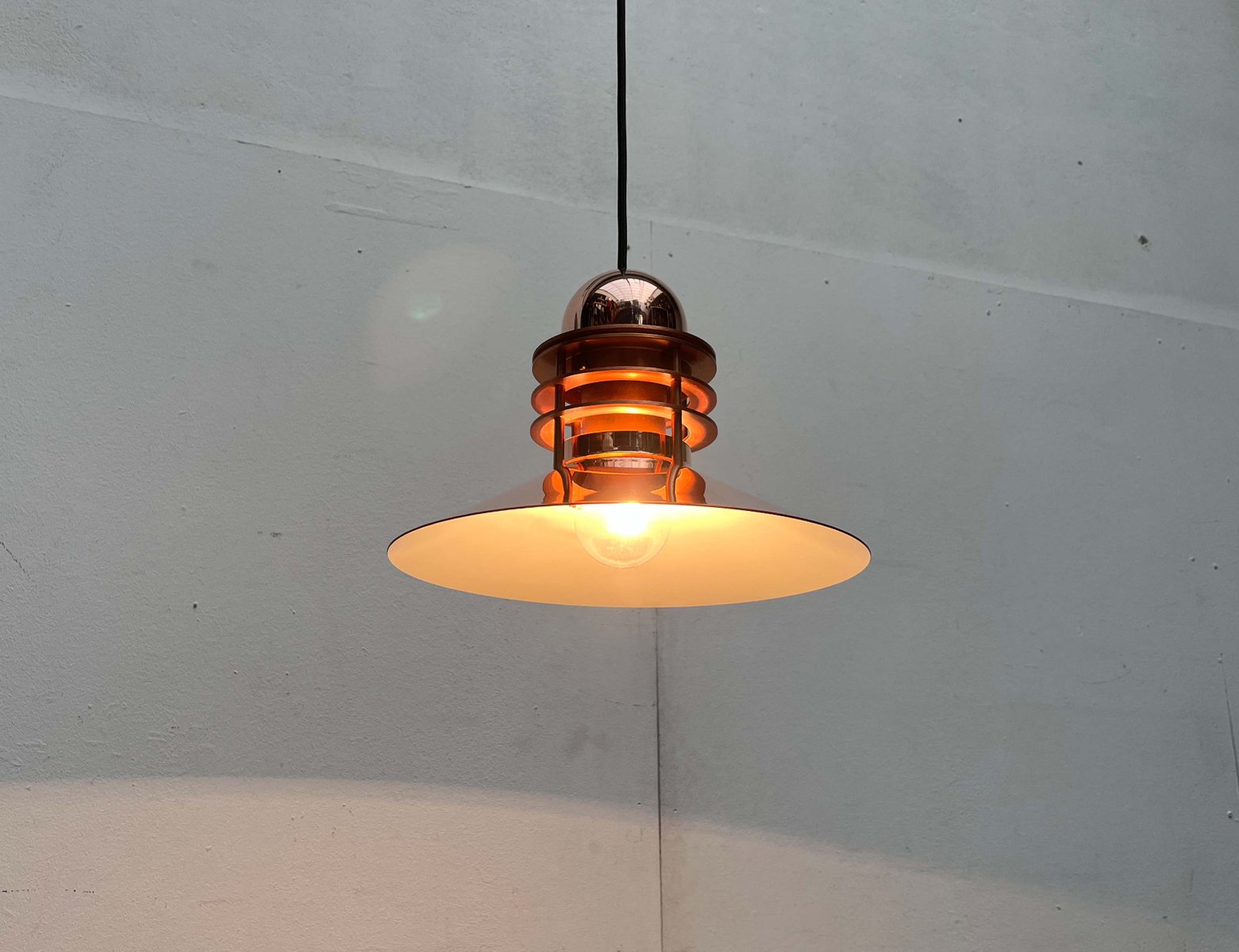 Das Unternehmen Louis Poulsen, heute einer der bekanntesten Hersteller für Beleuchtung, begann seine Laufbahn im Jahr 1874 als die Copenhagen Direct Wine Import Company und orientierte sich 1896 zum Zulieferer für elektrische Bauteile und Werkzeug um. Um 1910 übernahm Louis Poulsen (1871 - 1934), der Neffe des aus Kopenhagen kommenden Gründer, das Unternehmen und tat sich kurz darauf mit dem Unternehmer und dem von Elektrizität begeisterten Sophus Kaastrup-Olsen (1884 - 1938) zusammen und die beiden eröffneten Louis Poulsen & Co. 1917 erwarb Kaastrup-Olsen auch Poulsens Anteile und wurde damit zum alleinigen Inhaber, genau zu der Zeit, in der er von der während und nach dem Ersten Weltkrieg immer weiter ansteigenden Nachfrage für elektrisch angetriebene Installationen profitieren konnte.