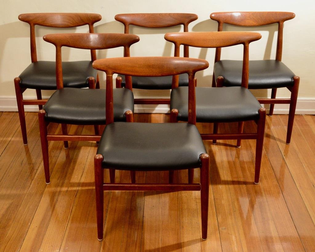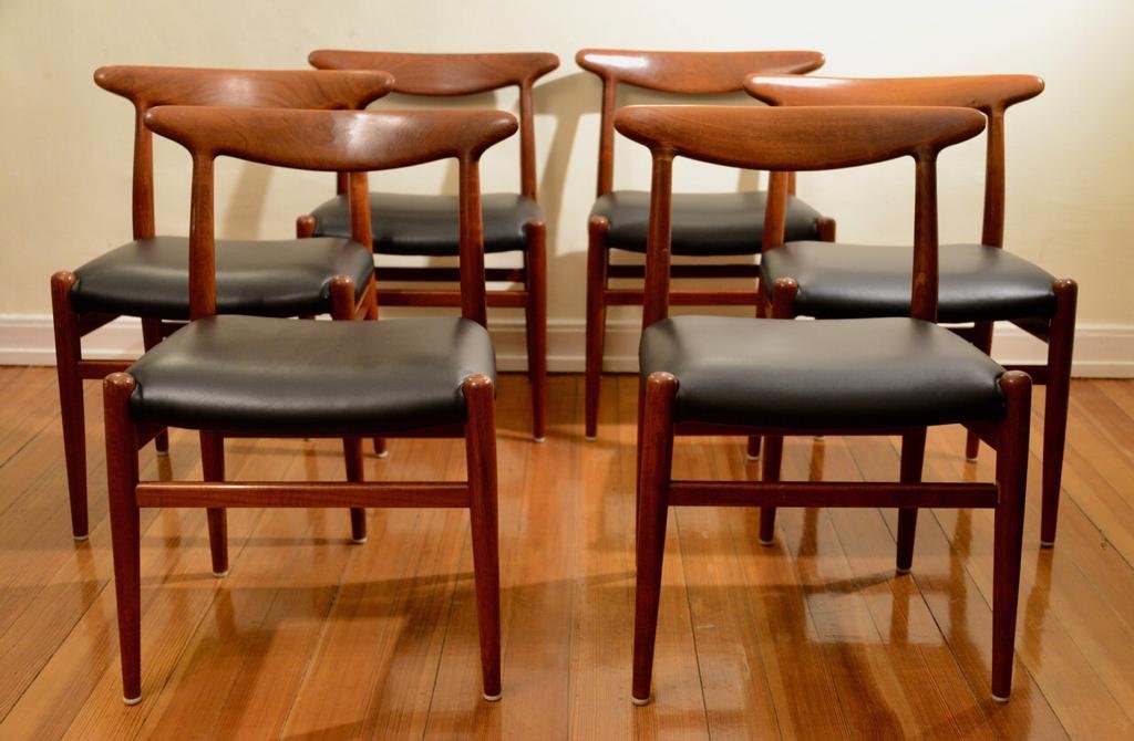 Dänische W2 Stühle aus schwarzem Leder von Hans J. Wegner für CM Madsens, 1950er, 6 . Set